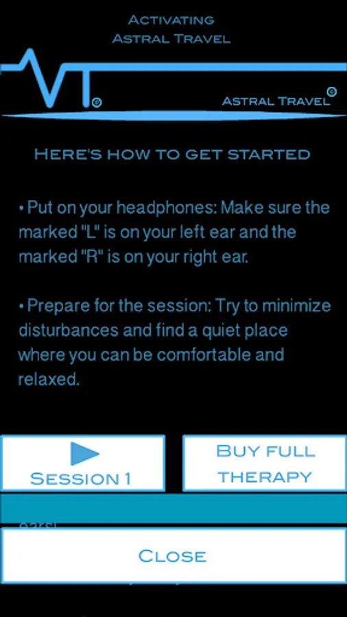 Astral Travel consists of two 22-minute sessions, both of which are essential for a complete experience. For optimal results, use large headphones or high-quality earphones with correct left and right placement.