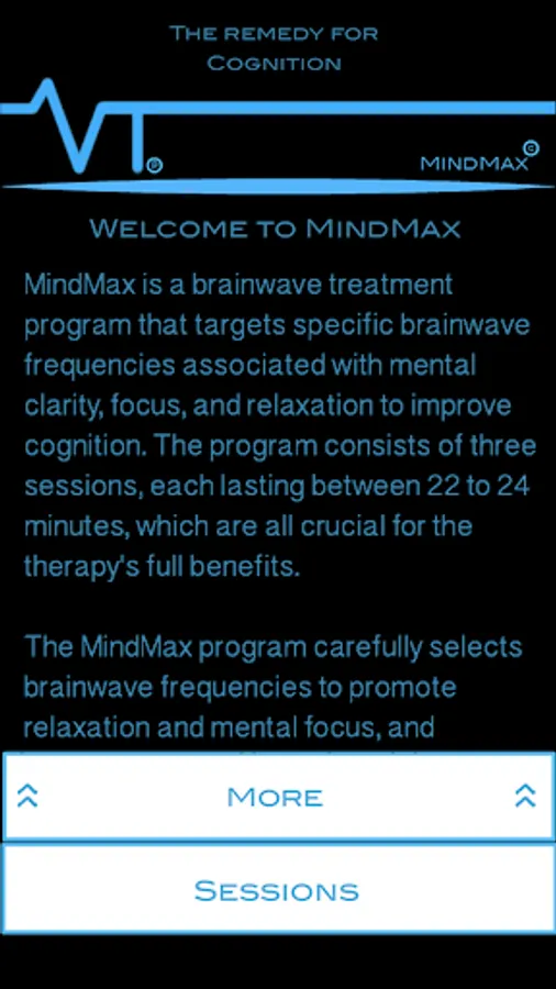 MindMax is a brainwave treatment program that targets specific brainwave frequencies associated with mental clarity, focus, and relaxation to improve cognition. The program consists of three sessions, each lasting between 22 to 24 minutes, which are all crucial for the therapy's full benefits.