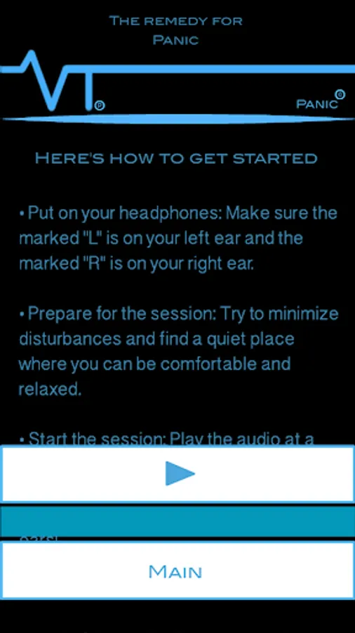 To help users get started, we offer a four-minute trial of the "Panic" treatment. It is important to note that this app requires the use of high-quality headphones or earphones with proper placement of the left and right channels for maximum effectiveness.