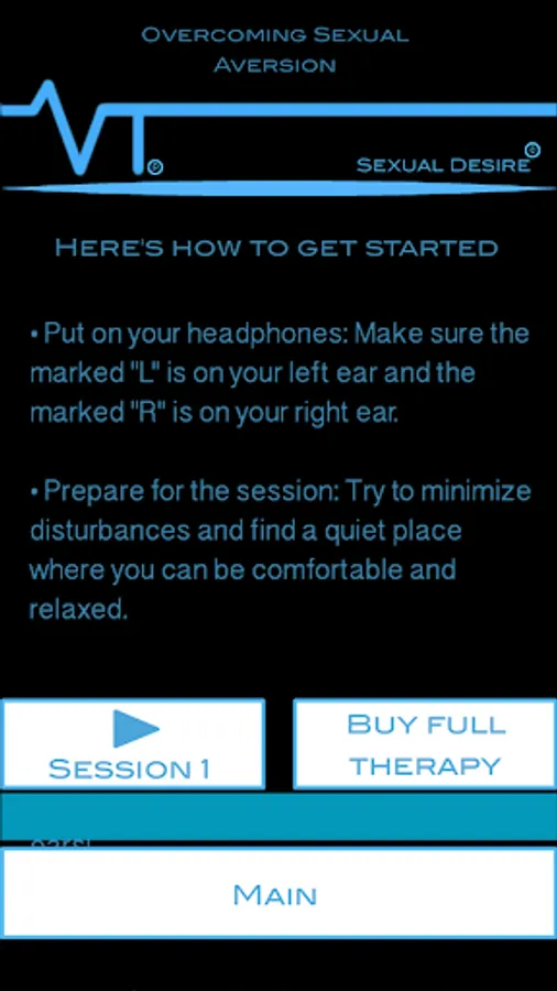 Sexual Desire consists of two different sessions, each lasting 22 minutes. The free version is 14 minutes long. To use the application, it's necessary to have large headphones or high-quality earphones with the Left and Right placed correctly.