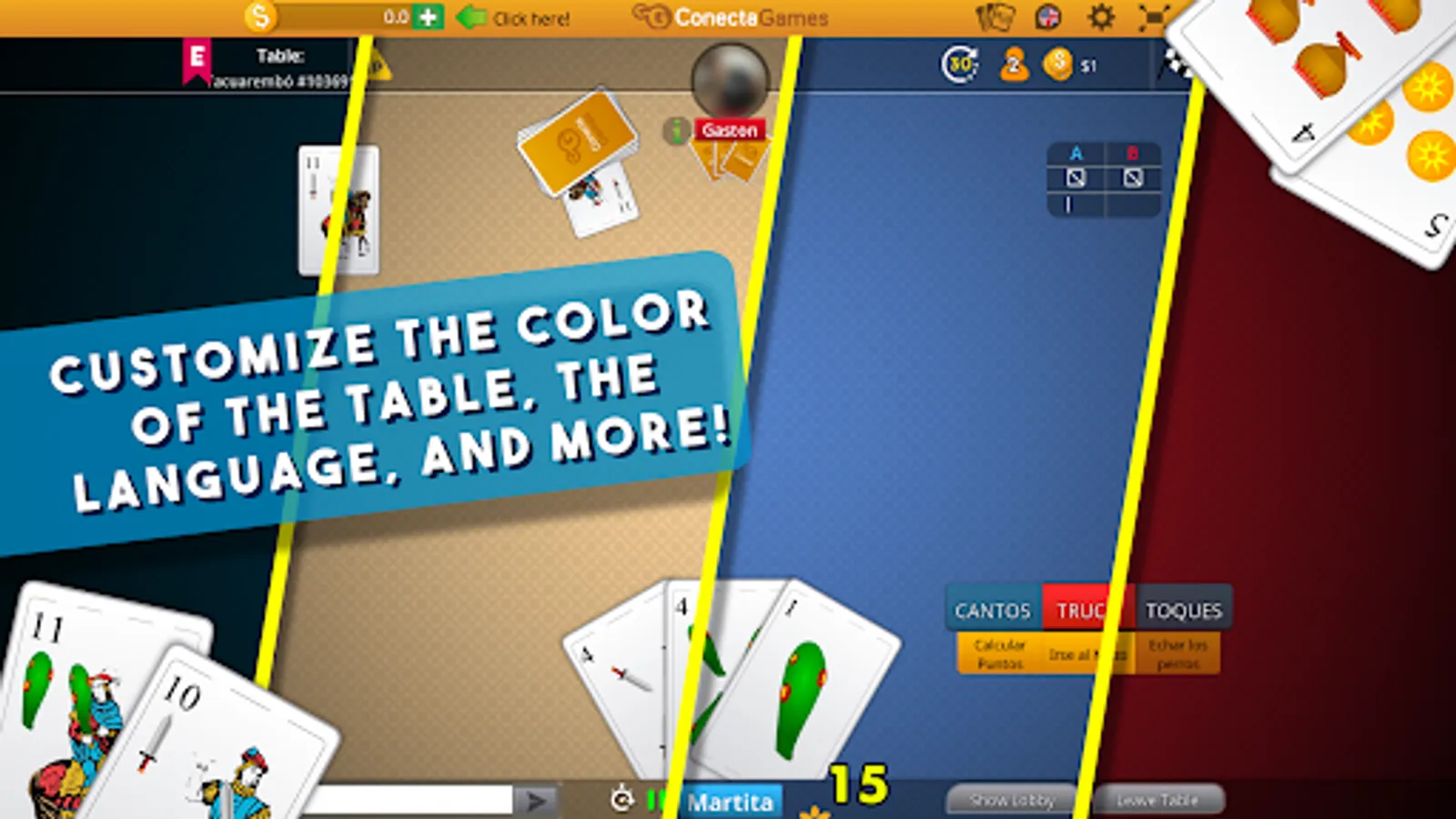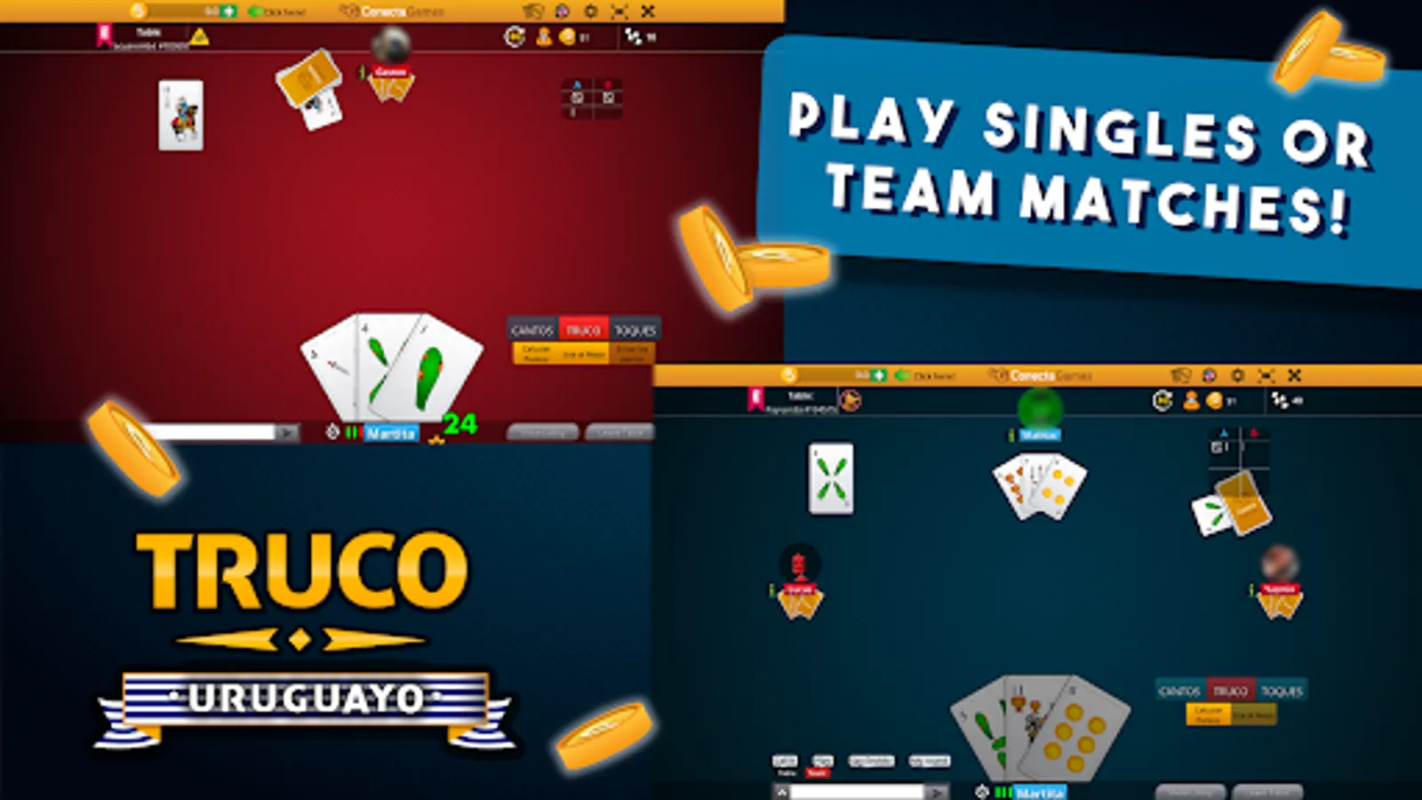 Play on your mobile or tablet wherever you are with the Truco Uruguayo app from ConectaGames!