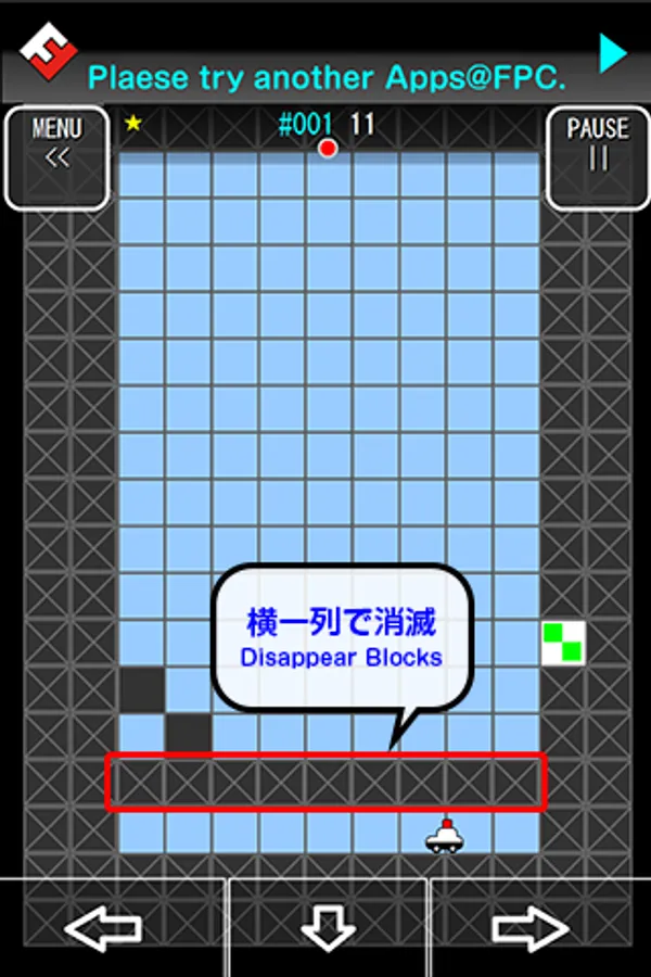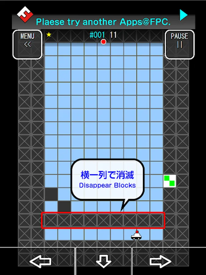 * The pieces of "Block" will disappear when aligned in a row in the horizontal direction.