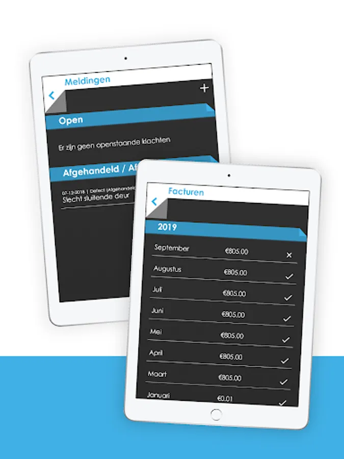 In this app you can make changes to your personal data, view invoices and payments, report malfunctions and complaints, read documents, view email messages and find our contact details.