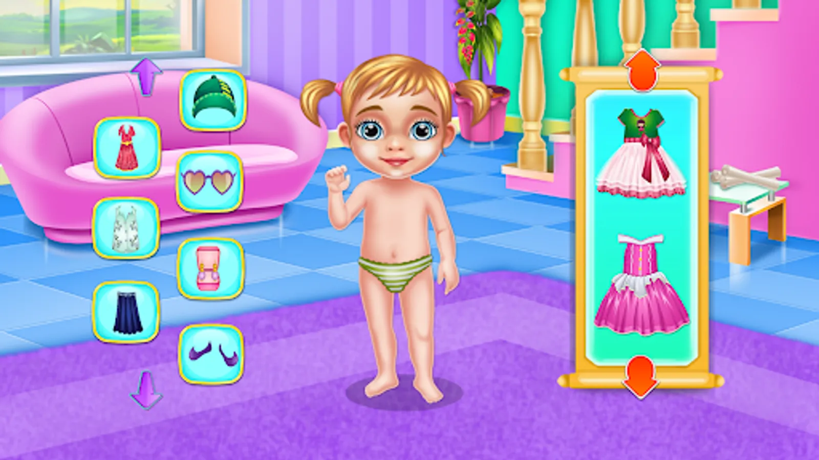 If you think being a mom is hard, try to play this game that will prove you how difficult can be to be a nanny as well. This nanny game is for sure one of the best and once you will fulfill the cleaning and the taking care phase you are free to move to the next step that includes the dress up process where you can freely use your imagination. During this girl game, you'll learn many things and for sure you'll experience lovely time with this cute baby girl. First comes the cleaning part and there you have to take care of the playroom because this girl needs her space and her things where they belong. Accomplish the given tasks and try to make them right. Now, you will go into the bathing part to make sure the girl is clean and all washed out. Use the shampoo to wash her hair then clean the body and don't forget to play a little bit while you are in the bath to distract her from the real action. All that remains is to dress her up in a sweet outfit with cute accessories. Put on a dress or the overalls and match to it a pretty bow and nice shoes. Besides that, you can add glasses or earrings maybe you will find something that will suit this girl and her new fresh adopted style. Have fun and keep this nanny from going crazy by offering her the help she needs to get things done.