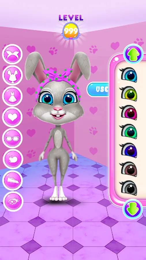 There are a lot of great challenges that await you in this animal game. Have a delightful time with Daisy, the bunny, and let her introduce you to the wonders from her Candy World. Before you can get into that you must first prepare her. He needs to take a bath and also be nursed. Wash her fur and make her clean. Once you do that you can move into cleaning her house. Wipe the floor and get rid of the dirt. It looks like your pet's paw requires proper nursing. Follow the given instructions and do the right procedures for an injured bunny leg. Continue the grooming with a delicious food serving. Daisy will ask for a certain dish and you will serve her by her preferences. After the bunny's tummy is full you will move into designing her outfit. Create a unique aspect to suit Daisy's style and make sure you use your creativity for multiple looks. Put on nice accessories, add your mark on each of her outfits and try to incorporate various styles. Use those fancy dresses and build your favorite version of your pet. You can even chose her hairstyle and change the color of her fur. Customize as many looks as you can and make her feel fabulous in every one of them. Next you can enjoy the incorporated candy mini-game. Find out the best way to match and mix those candies and win the prize. Have fun and let Daisy show you how great is in the Candy World.
