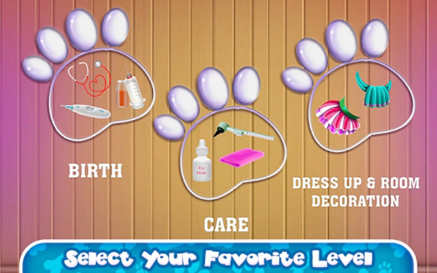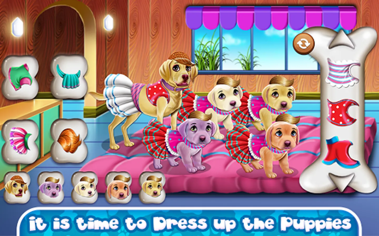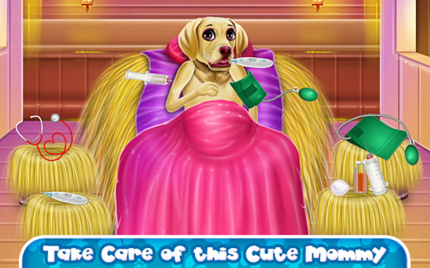Have an unusual experience with this puppy game and try to discover the secrets of giving birth. As you may know, a pregnant dog is a big responsibility and if you want to be prepared for when you will start the journey you should definitely try to check all the health verifications. The mom will go through some medical routine procedures in order to be ready. First, you will check her pulse, then you will inject some vitamins, the body temperature and the heart beats are next. Use the special ultrasounds device to see the baby in the belly. Help her to get in the perfect mood for birth-giving and encourage her to push in order to get out the little puppies. Rush in the nursing room to wash the babies and there check if the vital signs are established. Now your concern will be the babies and their medical condition. So, get each one of the quadruplets in the bath tub and make sure you offer a cleaning and fun bath. Once the bath is over you will dry their fur and apply some eye drops, maybe you could clean their years too. Follow the instructions and move along to the decorating part. First, you will make sure the room they will stay in will have a perfect environment for them. Next, you will dress up the mom and the little Labradors with delightful outfits. Use all the arsenal you've got and come with a matching design for the welcome room in which the party of homecoming will be held. Have fun!