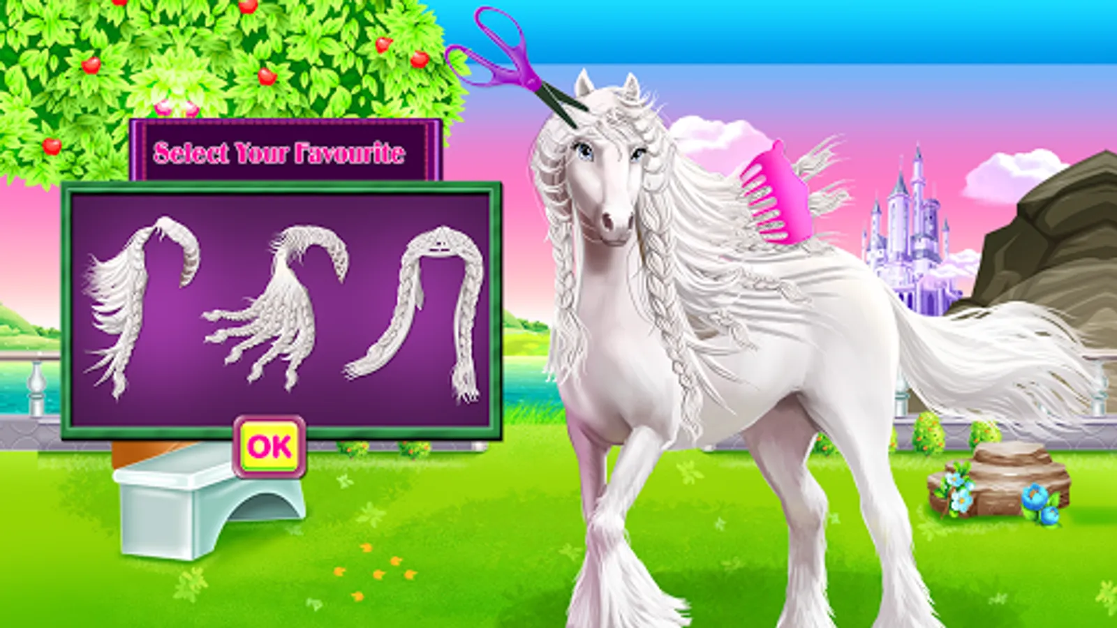 It's an emergency, the princess and her beloved stallion are in a rush for a wedding preparation. Play this hairstyle braided game and help out this couple to get their desired look for this major celebration that is ahead. Match their outfits with their new brand braided look and make sure you take care of both of them. So, there will be a part where you remove all the foreign objects and the dirt that gathered in the princess' hair and in her horse hair too. You will have to arrange and take care of the hair in order to be healthy and ready to be braided. Then you will pick the kind of headdress you like the most and try to make it exactly the way it looks. Depending on the haircut you have chosen you will be adding diverse accessories and clothing, but that only when you are done with the hair part. There will be some techniques you will see and you will have instructions on how to do it. Put the hair one strand on top of the other and make that braided look you want. Once you finished it you will be moving further to the dressing up step. You will be having a special hair decoration where you will have to use those pearl wreaths and other precious accessories. Use the wardrobe we have and assemble a lovely outfit that will highlight the cool hairstyle she just got. Add different pieces of clothing and try to be creative in preparing these two for a wedding event.