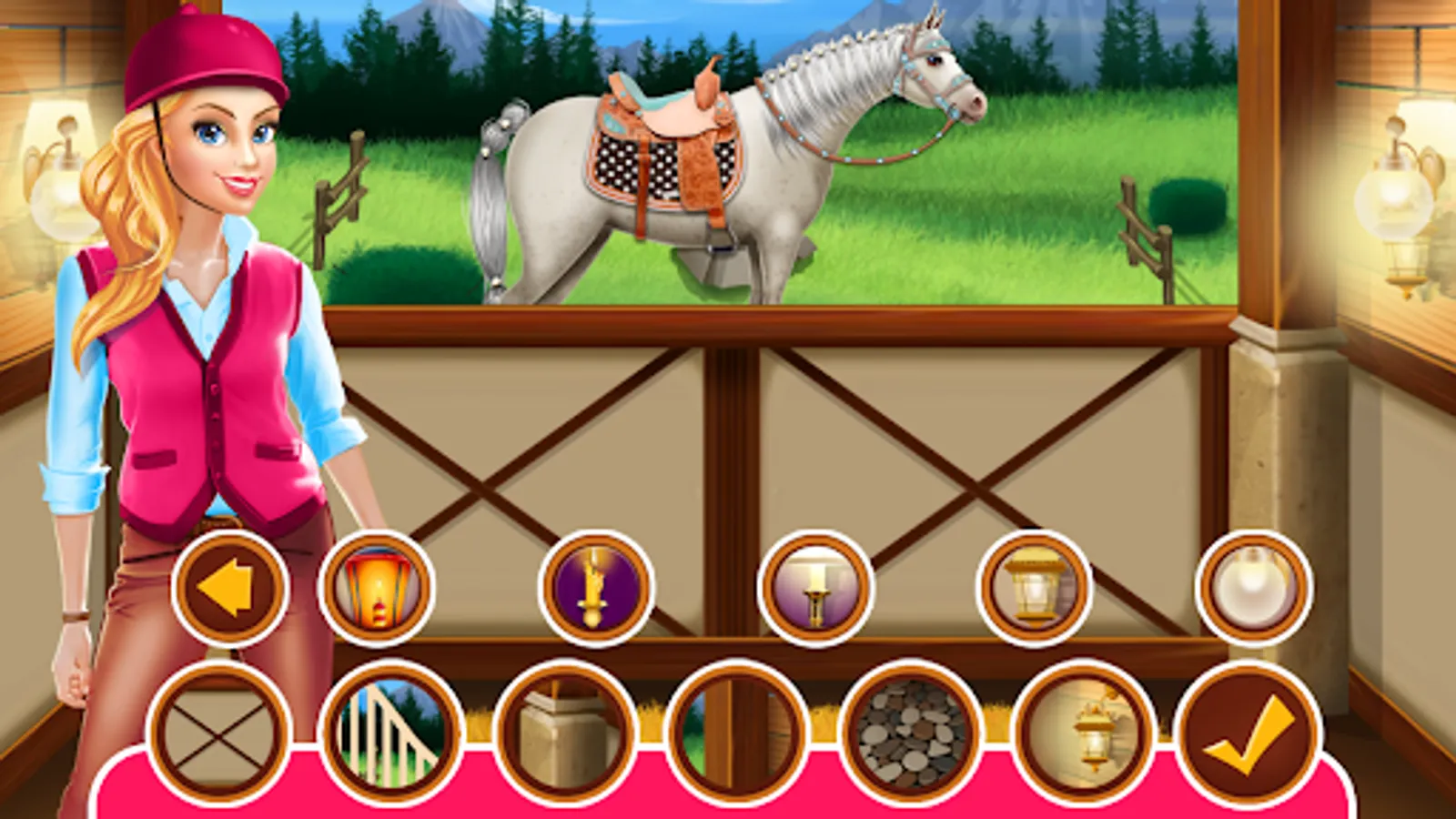 The first one is the ridding part where you have to manage all your concentration because is a wild ride that imply jumping over the obstacles, collecting the carrots and earning money that you are going to use in the next phase. You have to go through 5 levels to complete this session. Now you need to buy clothes for the owner and also to create an appropriate outfit for the stable. Deal with her eyebrows, eyes, lips, choose a beautiful look maybe you would like to add some accessories like bracelets and helmet. The one who's coming next is the horse dress up where you are going to change his aspect and attire with a refreshing color and design for the crest. Choose the saddle that would make him look better add some accessories like tattoos, wedges, wings and many others pluses to the look.