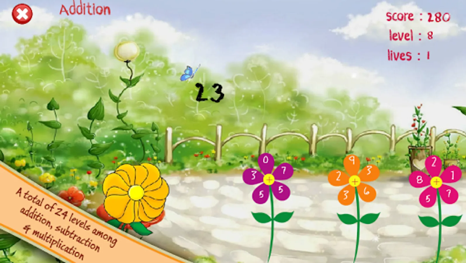 A fun filled game to train your kid's and also your mathematical skills. With categories like addition, subtraction and multiplication and numerous levels among them, this game is a perfect partner for you to train your brain in playing with numbers. Perform operations on numbers ranging from two to five simultaneously to get an outcome. Play, sharp your brain in math, share it with your friends on Facebook and more! Go on, give your children a great educational game.