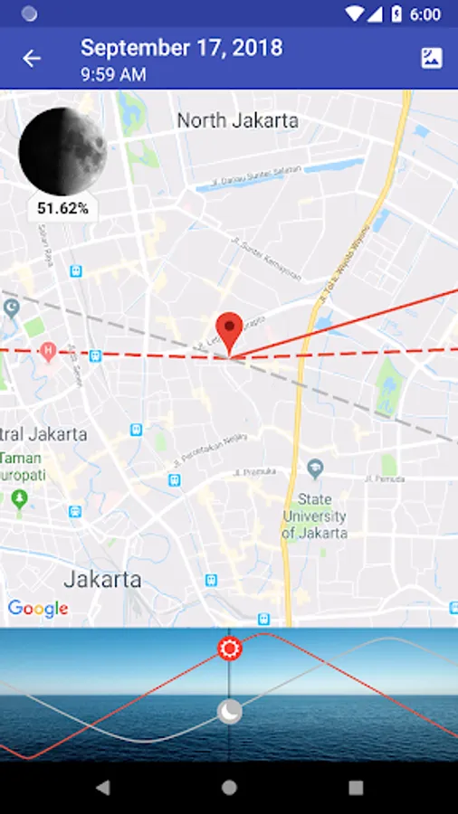 • The percentage of the moon's illumination is provided as well as times for sunrise, sunset, moonrise, and moonset.