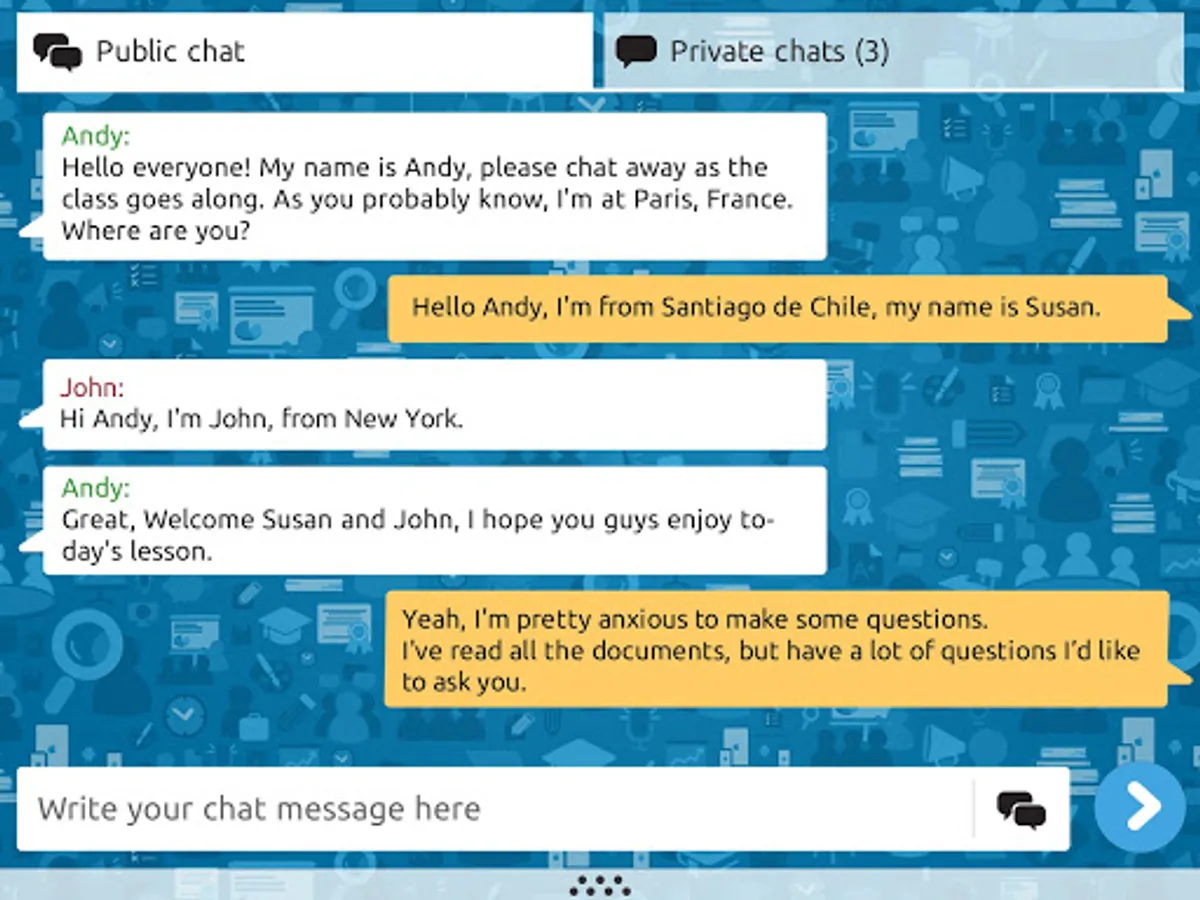 - Chat in real time with other participants