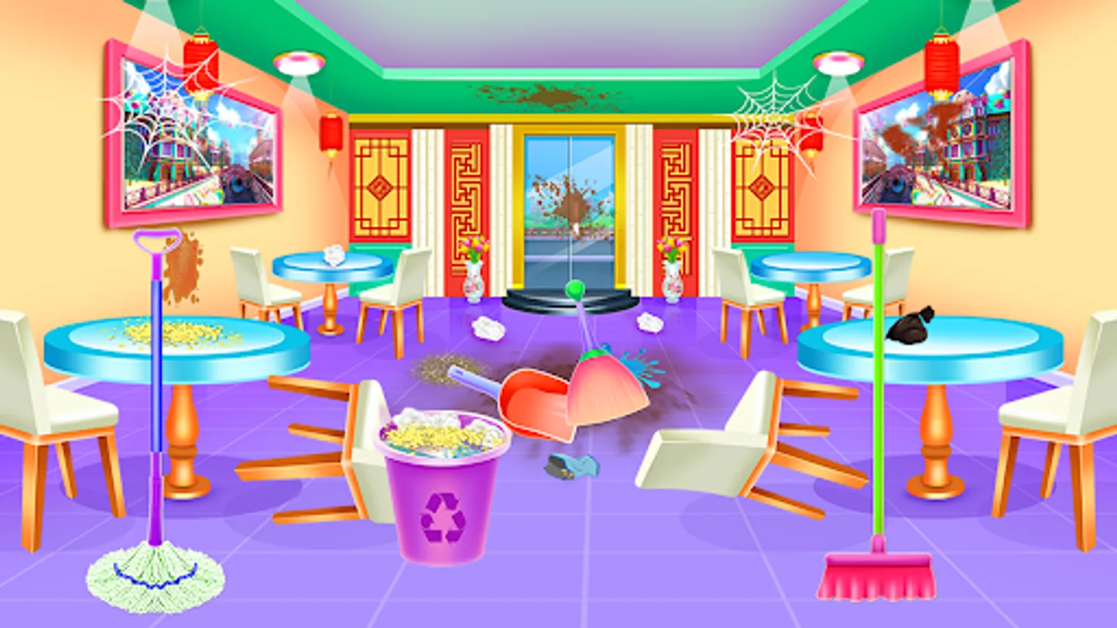 Test your ability to adapt to different situations in this cooking game where you will actually have to clean first to get to the part where you will prepare the food dishes. Try to understand how important is for a restaurant to welcome its customers into a nice and clean environment. The place needs a total restoring and you are going to make it. The floor is full of stains and water, the walls need to be rubbed, the main door made out of glass is full of dirt, there is a lot of trash around and the things all in a total disorder. Fix the chairs, get the place washed and don't waste any minute because you will need all of your time for the three special dishes that comes next. Go straight to the kitchen and find out how to cook these specific Chinese plates. The noodles are the first item and before anything else, you will boil them in a big pot. Prepare the veggies and fry them in a pan, add the chicken breast and the noodles on top. Mix the composition and once it is fried you will be serving a delicious Chinese food. Next comes the sweets and here you will put together some ingredients to make a dough. There will be the fortune cookies and others specific traditional meals. Follow the indications and make sure you complete three delicious challenges.