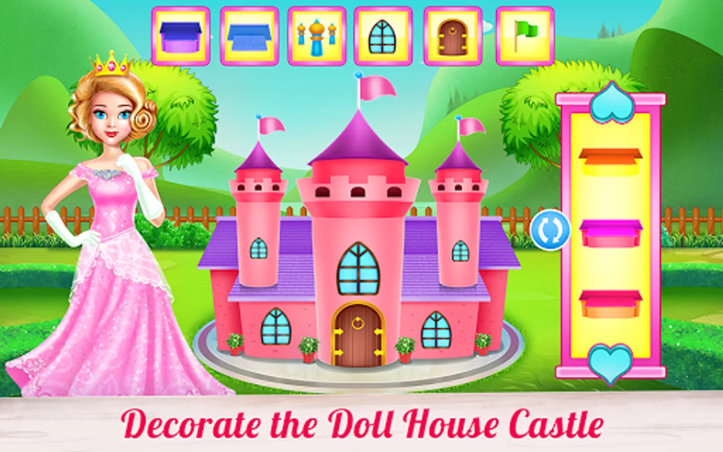 This doll castle needs serious improvements and you are the one that is going to make a change of scene. Play this decorating game where you clean and design the home of a beautiful doll. There are some steps that need to be followed to complete this task. Make sure you understand how each chore is done and make a makeover for this dollhouse. Begin with the cleaning activities and follow the tools that come with the instructions of use. The interior makeover will be the first approach and here you will have some simple tasks to do. The bathroom comes first and here you will remove the garbage, get rid of the dust and the stains on the floor. The shower needs to be disinfected and the mirror must be wiped. Also, you will have the opportunity to renew the final aspect of this room by doing interior designing activities. Use the decorating items to create a lovely bathroom for this doll and try interesting combinations. The next room will be the bedroom. Ensure a clean environment using the experience you have gained from the bathroom cleaning. Consider a new look for this place too. The exterior of the house also needs improvements. So, cut off those weeds that block the view, collect the leaves, clean the walls and make everything like new again. Now you can design the exterior with a new rooftop style, or perhaps new windows. The dollhouse looks amazing and your job is done.