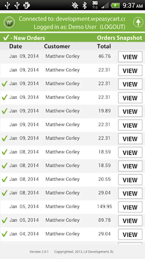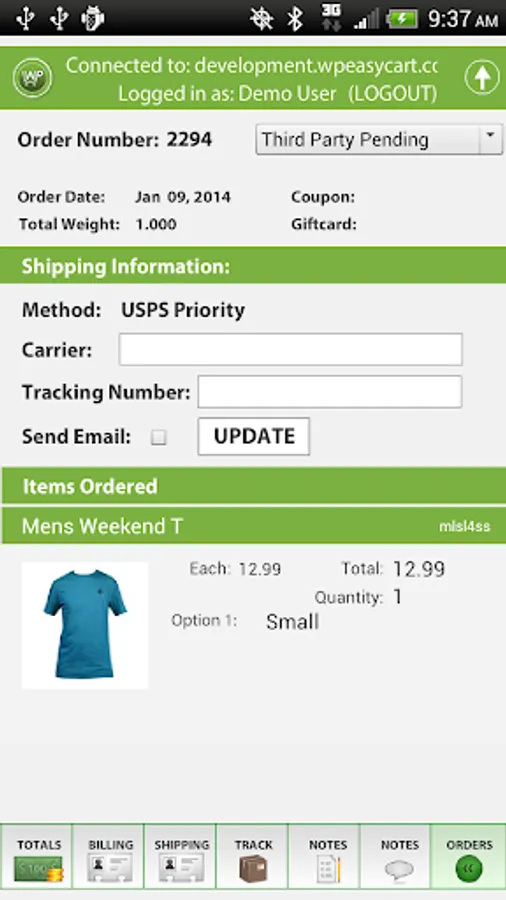 The WordPress EasyCart phone application lets you manage your shopping system from an Android smart device. The app lets you view your current orders and update shipping carrier information if needed. The new V4 phone app will save your login profile so you can easily start the app, view and track your EasyCart orders.