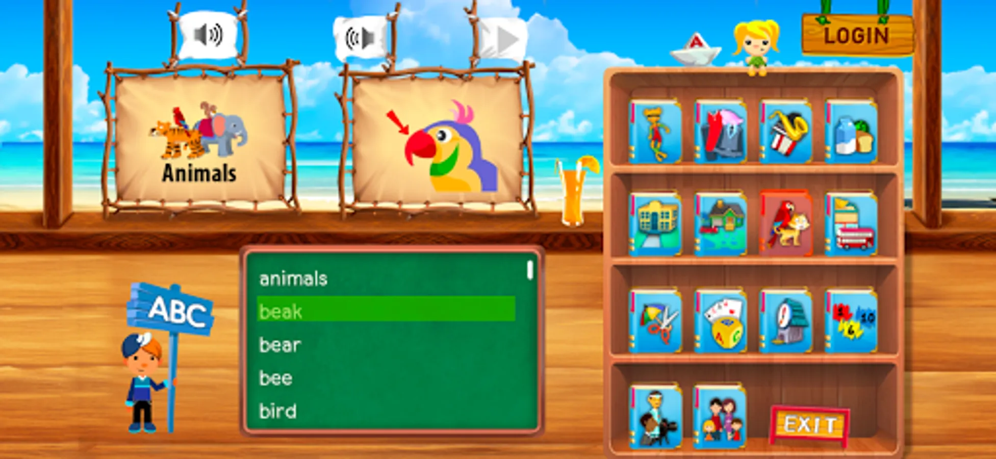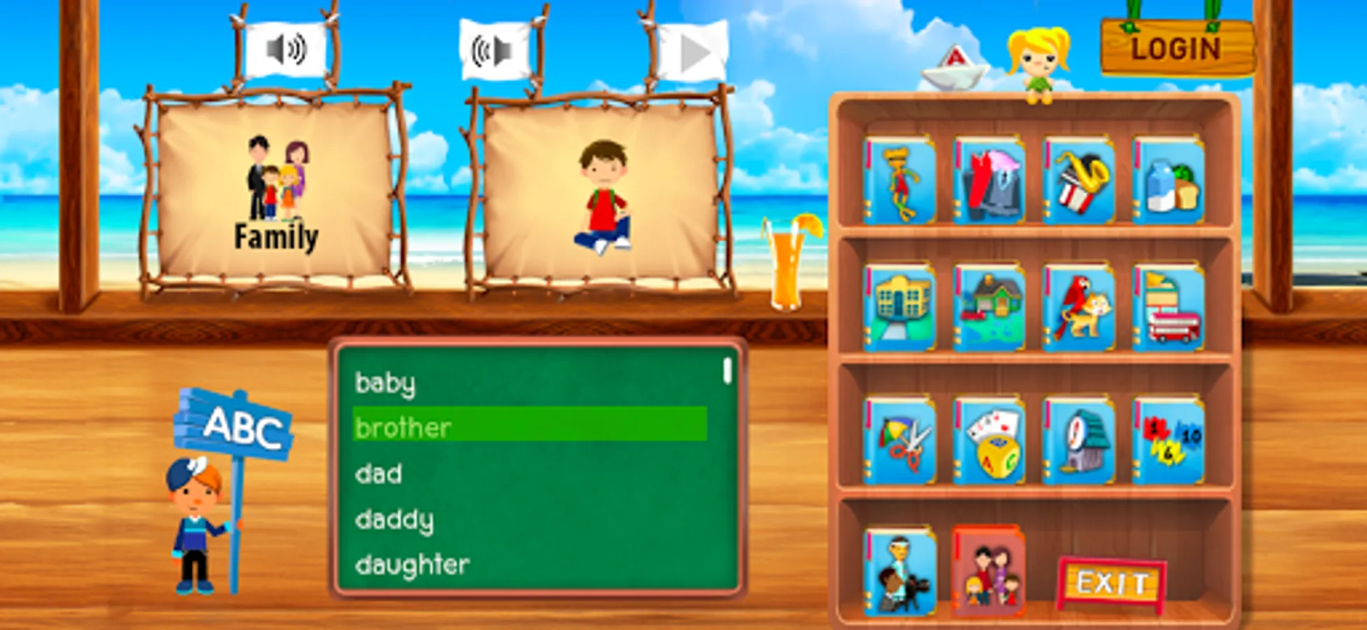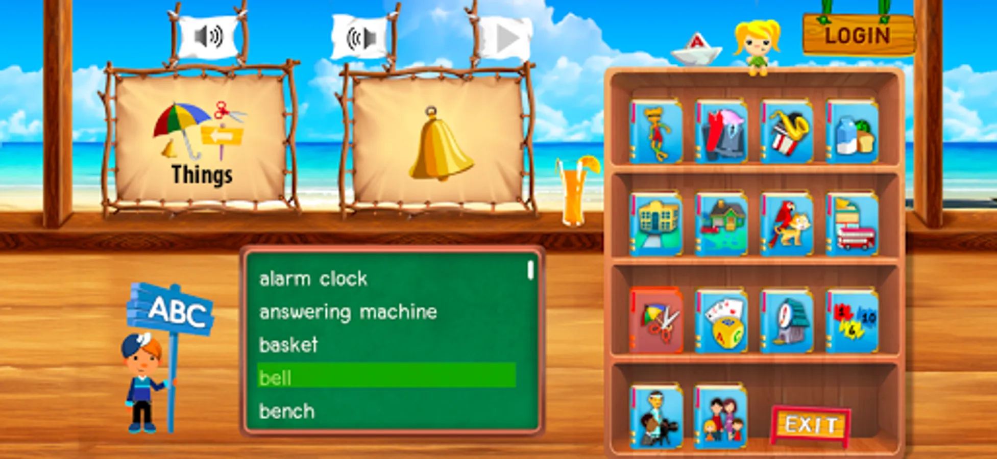 There are 2 ways for learning and reviewing the vocabulary: sorting by categories and by alphabets.