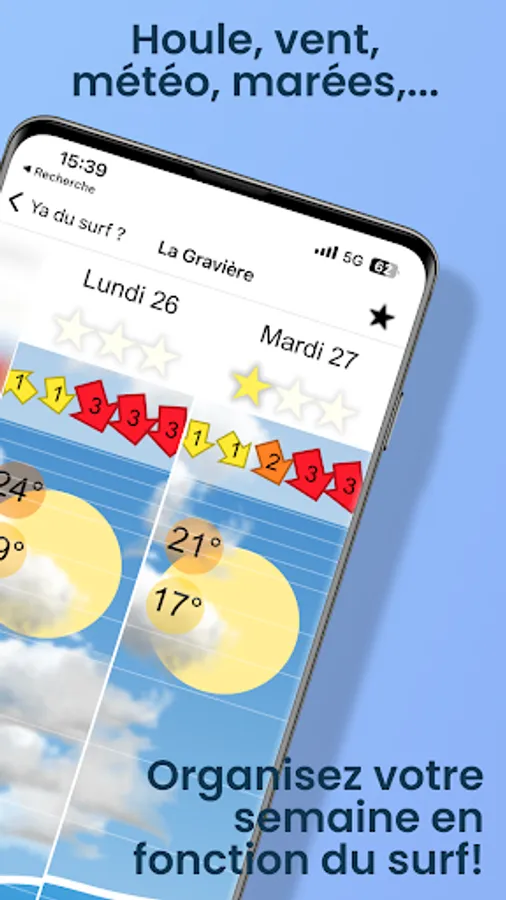 Yadusurf offers an instant reading of surfing conditions, and allows you to go further with an hour-by-hour precise vision for experts.