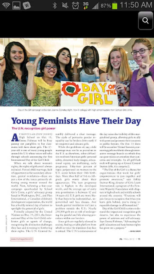 Now available for Android! Ms. Magazine is the largest feminist publication in the world – an award-winning, trusted, popular source for information and ideas, actions and inspiration for women worldwide. For over 40 years, Ms. has been Reporting, Rebelling and Truth-telling.