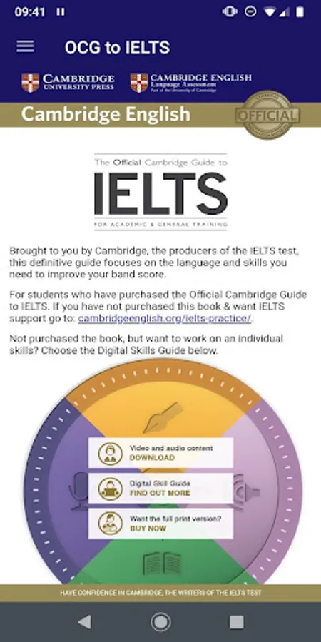This app is for students who have purchased the full print Official Cambridge Guide to IELTS. If you have not purchased this book and are looking for IELTS support please visit www.cambridgeenglish.org/ielts-practice/.