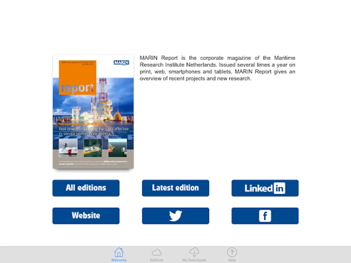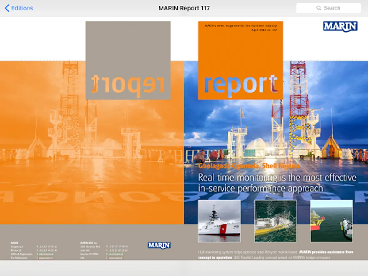 MARIN Report is the corporate magazine of the Maritime Research Institute Netherlands. Issued several times a year on print, web, smartphones and tablets. MARIN Report gives an overview of recent projects and new research.