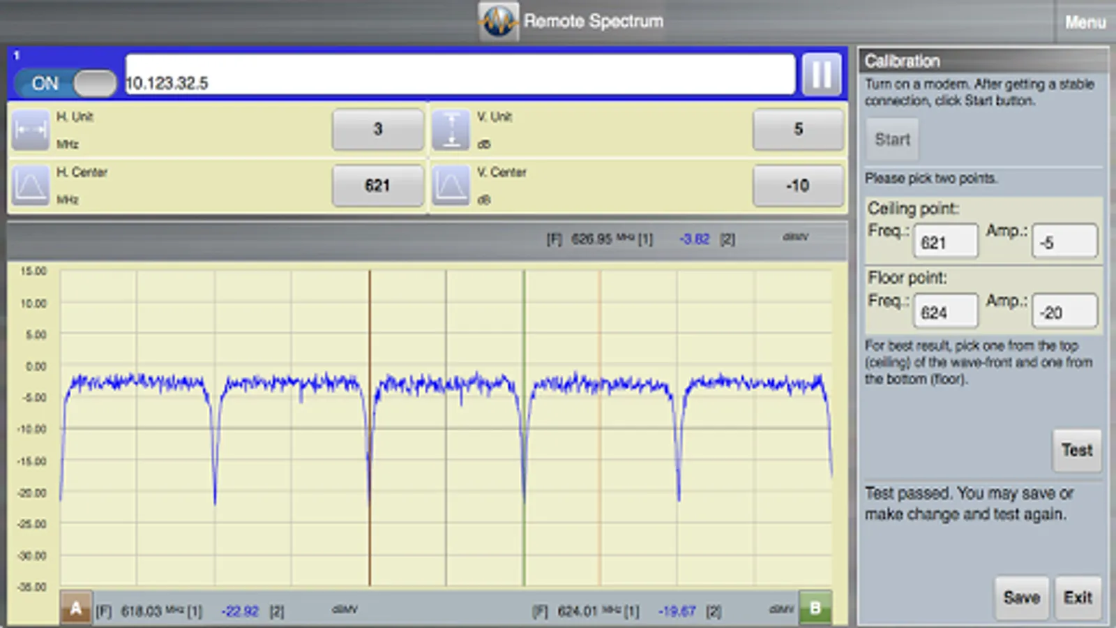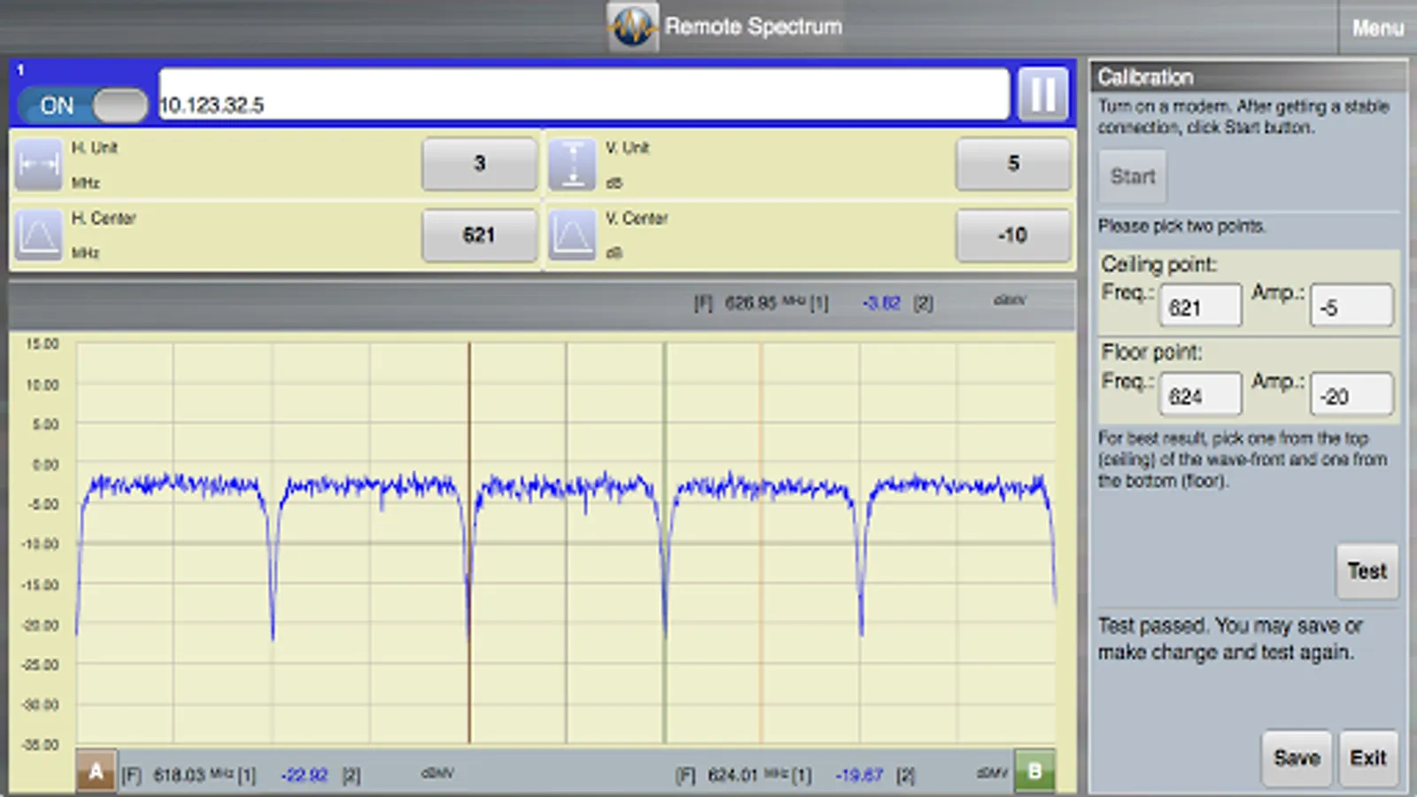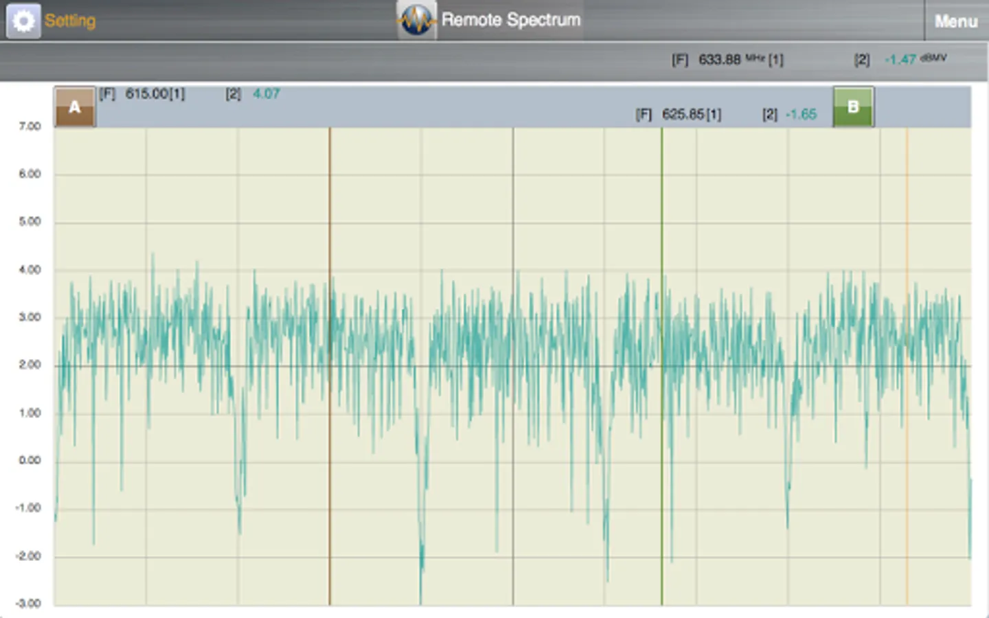 Remote Spectrum is an App designed for cable operators that allows a technician to view the full downstream RF signal passing through any compatible customer premises equipment (CPE), such as cable modems or set-top-boxes, without the use of a meter, and without the need to drive to the customer premises.