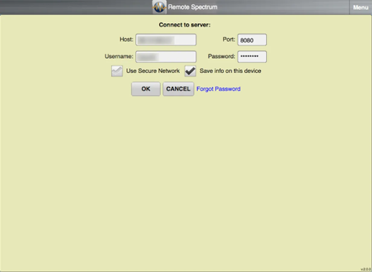 **IMPORTANT NOTE ** -- You must have the Remote Spectrum server software running on a server in your cable plant for Remote Spectrum to display the captured spectrum information. You will not be able to use the app until the server software is in place and users have been added by your administrator, and you will need a license key from ZCorum to run the server software and client applications.