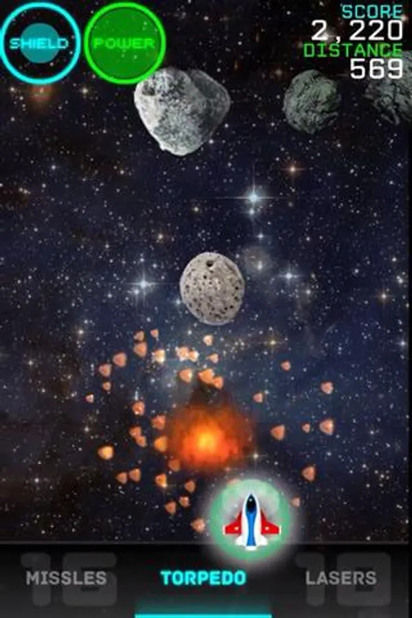 AstroBlast! is an exciting arcade-style game in which you fly your ship through an asteroid field, dodging meteors, comets, enemy drones, and a few other villains along the way. Use Torpedos, Lasers, and Drone-Seeking Missles to destroy the bad guys. Destroy the asteroids to gain more energy, missles, lasers, and force field power. See how far you can go!!!