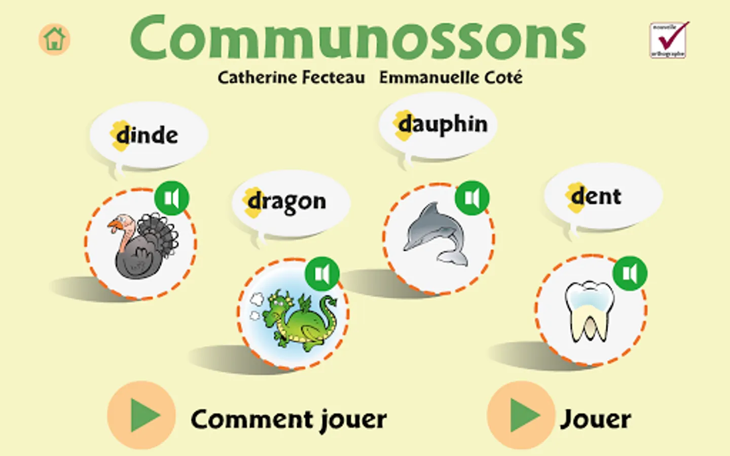 Communossons is a teaching resource for preschool and grade 1 teachers. It consists of a series of exercises for the recognition of syllables and sounds.