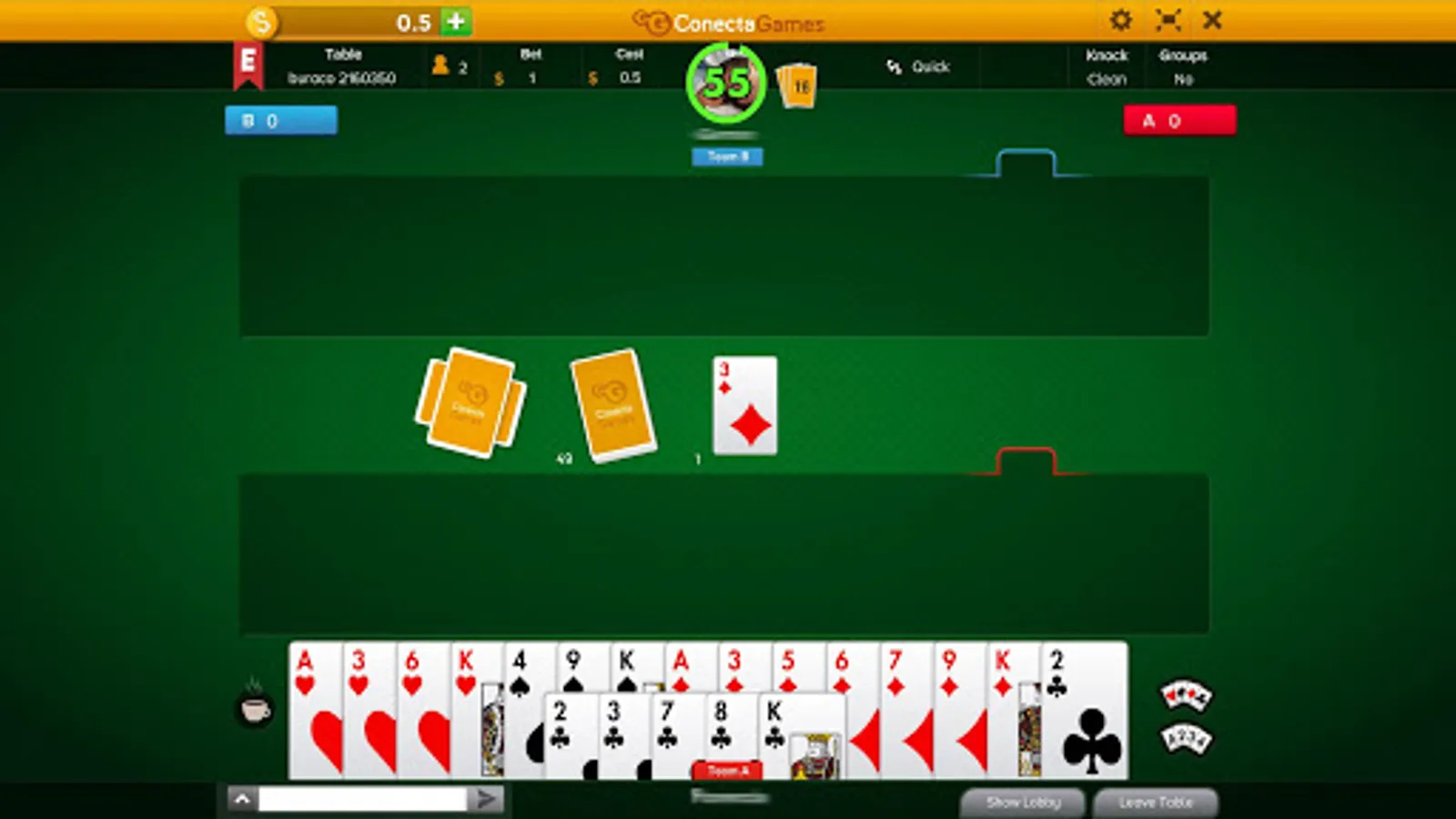 Buraco is a card game from the Rummy family. The the aim of the game is to meld down combinations of cards of equal rank and/or sequences of the same suit. A combination of seven or more cards is called a Canasta.
