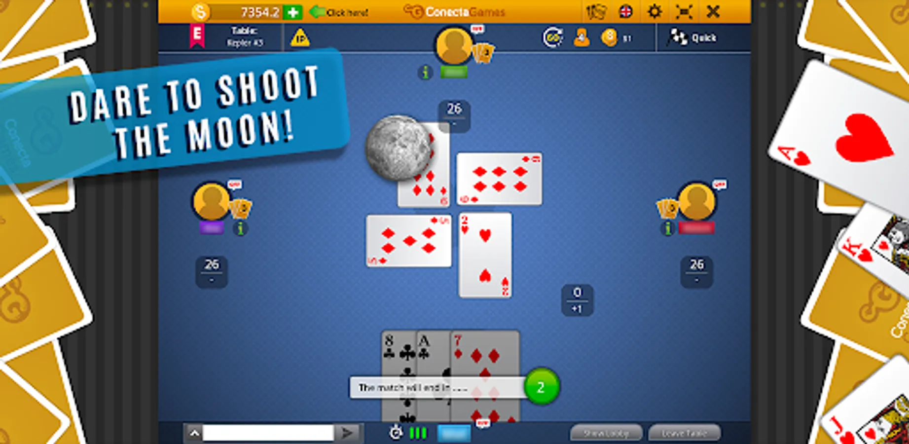 Break hearts by being the first one to play one hearts card, but be careful, you don't want to score points! Unless you're planning on shooting the moon. The winner is the player with the lowest score!
