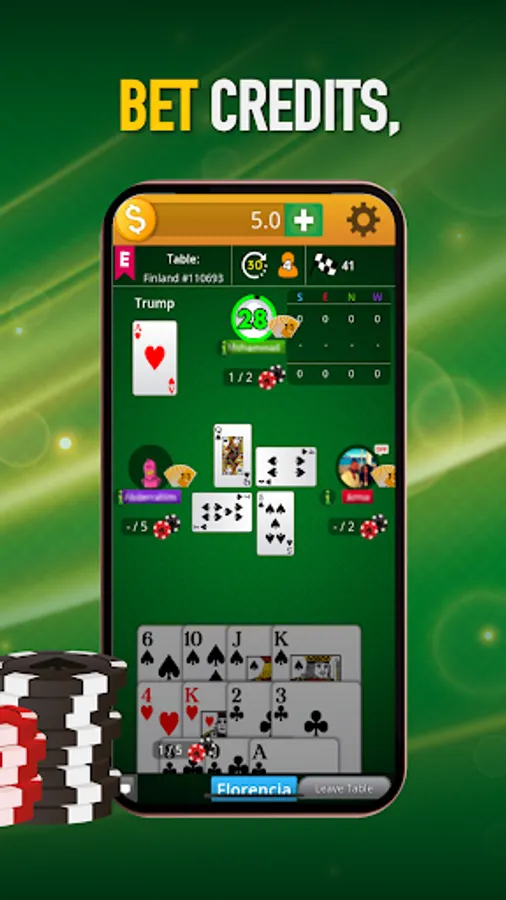 Each player decides how much to bid (minimum is 2), and no player may pass. Hearts are always trump. The total sum of all 4 bids needs to be at least 11, if not, cards will be dealt again. If a player’s score is 30-39 his minimum bid becomes 3, and the total will be 12; if the score is 40-49 his minimum bid becomes 4, the total number of bids must equal 13, and so on. Each bid is independent of the partner’s bid in a hand.