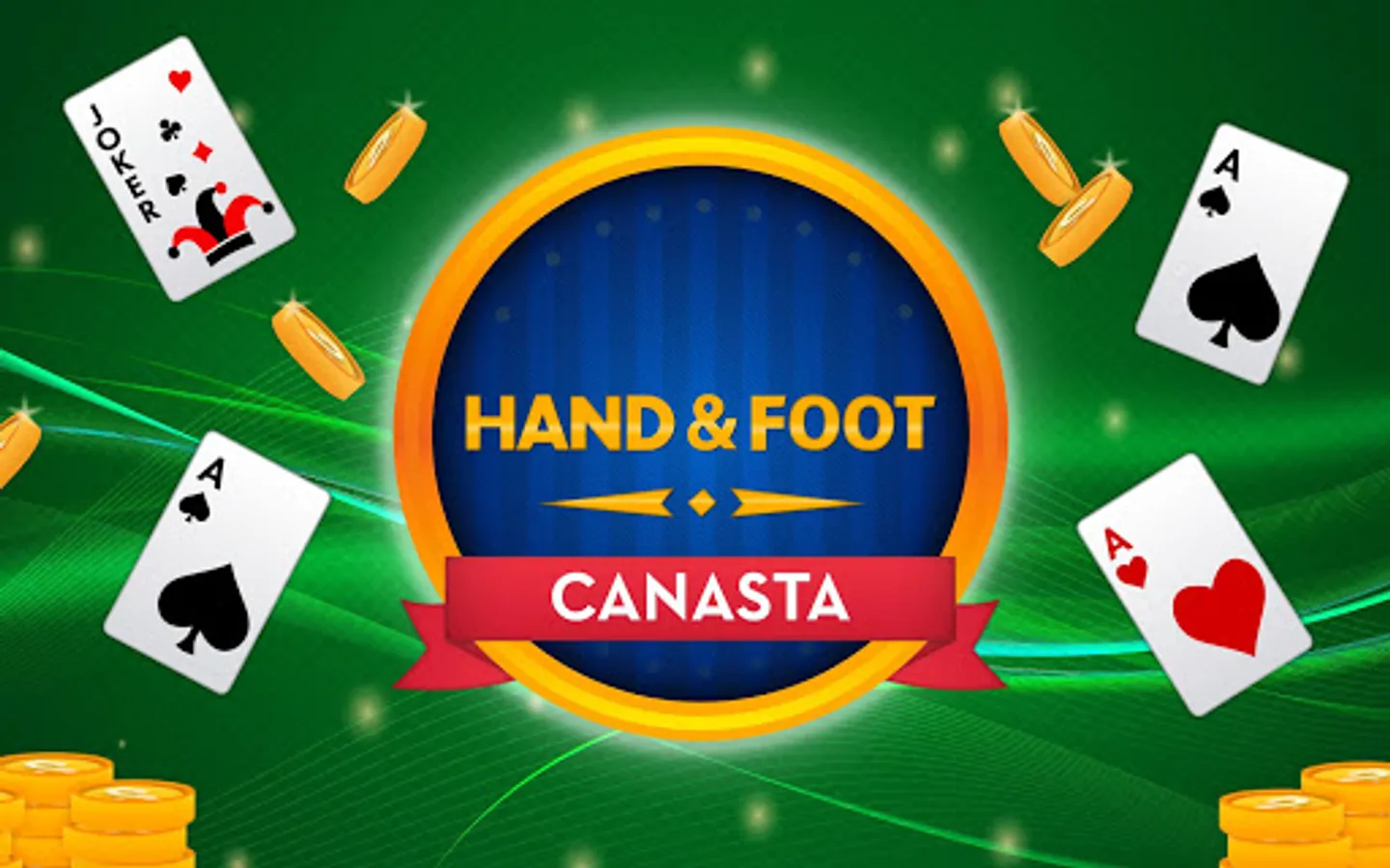 Hand and Foot is a Canasta variant involving three to six decks. The number of decks used is typically one more than the number of players. You need to pick up the Foot and have one natural and one mixed Canasta to go out. Red threes are valued 500 points, always against you. And Black threes block the pile.