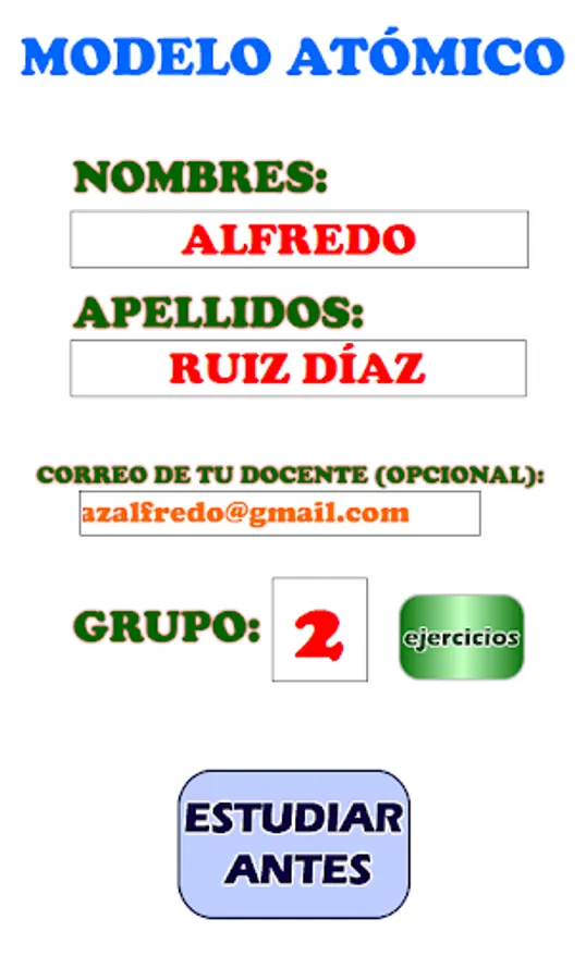 Evaluation system that sends the results of the students, via email, to his teaching chemistry.