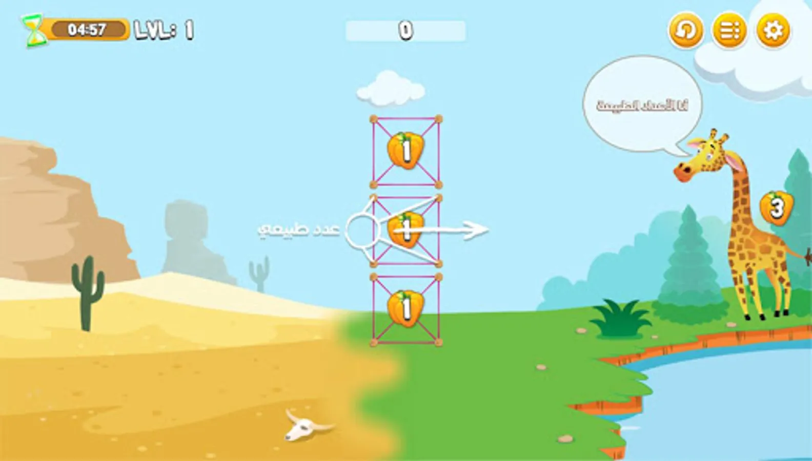 This game has a cartoon characters which is beautiful animals, the player should feed these animals with their favorite vegetables and fruits, which indicate numbers, while animals indicate groups of numbers. In this game, player will distinguish between real numbers and its groups, and will identify mathematics operations on real numbers and the roots.