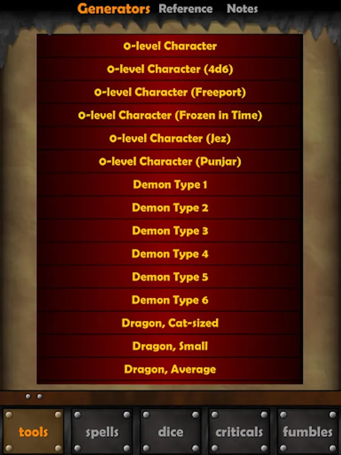 * Generators: O-level characters, demons, dragons, and magic swords!