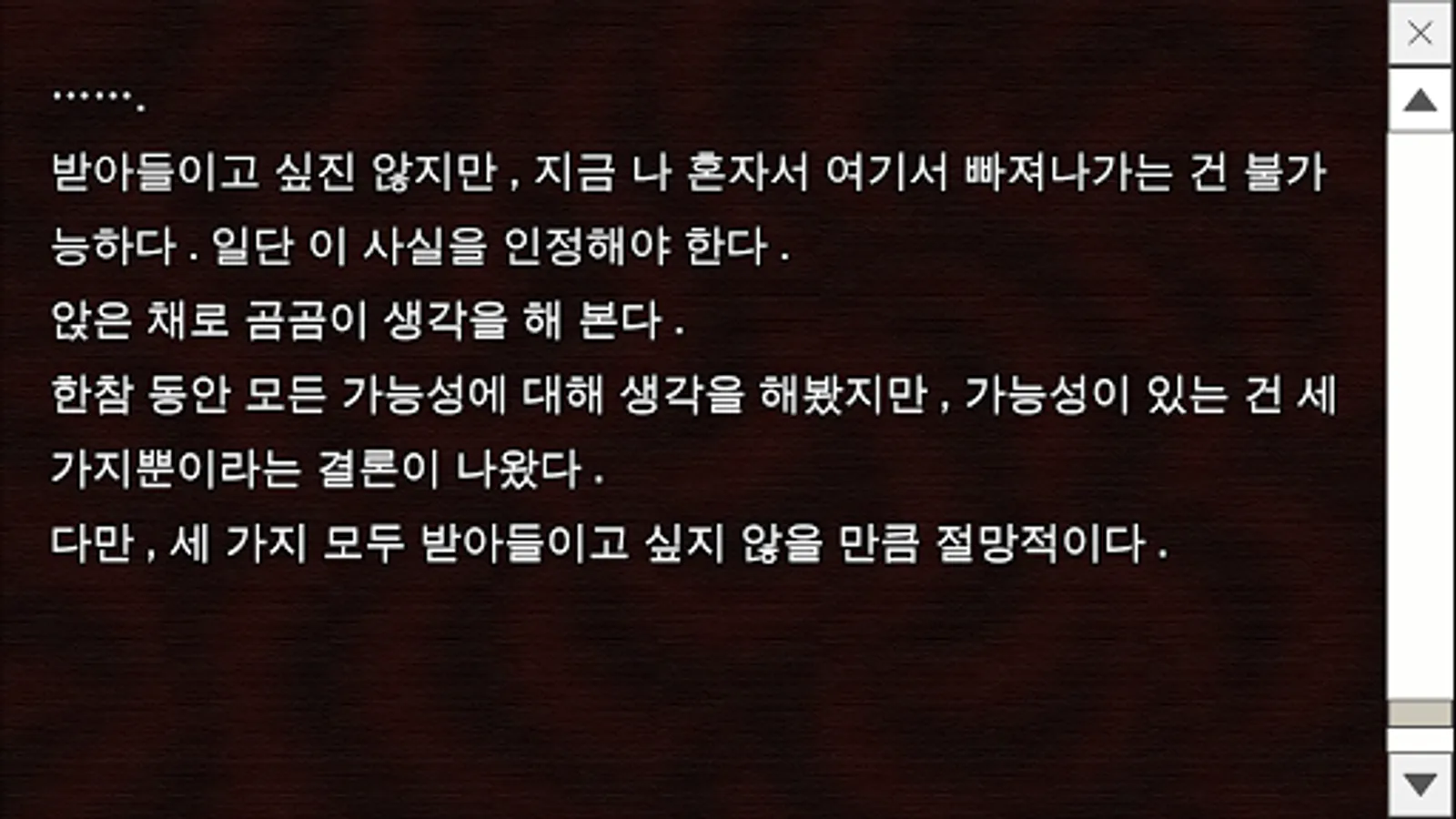 Today one day, no one came here. I can not figure out how to escape myself alone. This shabby house is unexpectedly solid.