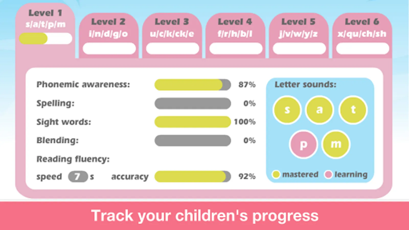 The app excels in its gradual introduction of groups of letters based on their ability to form words, its scaffolding options, multi-user performance analysis, and an amazing variety of games for maximum practice.