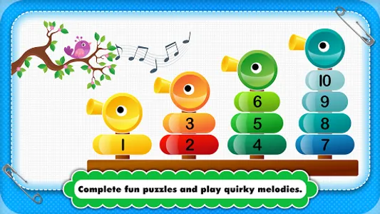 Quack, quack, music under attack! Complete a fun puzzle—a stacker with duck heads—and compose quirky melodies that combine musical and animal sounds as a reward.