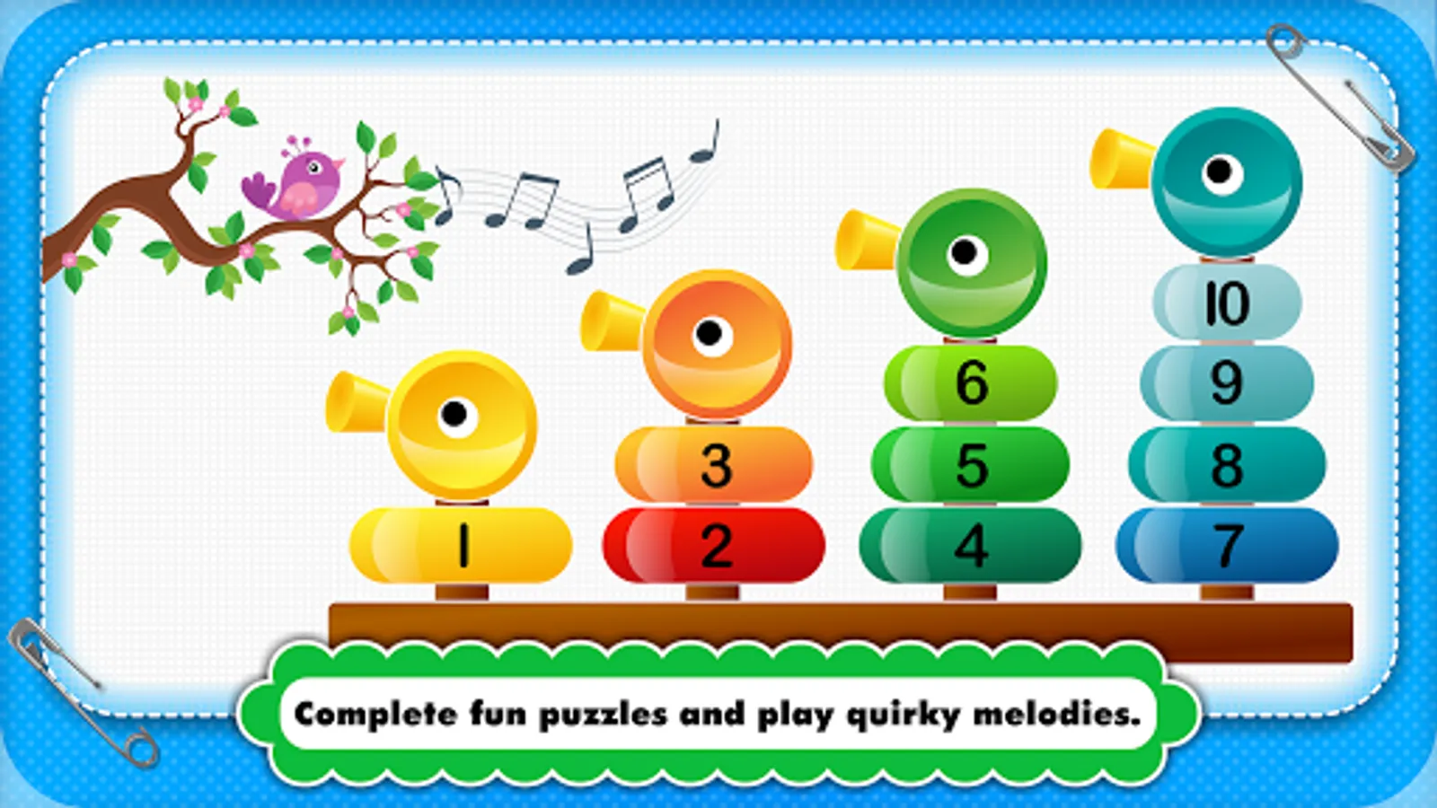 Time to test your ear for rhythm with our very special music birds. Tap on the birds at the right time to get them to chirp a melody for you. Choose out of five popular songs: Old MacDonald, Alphabet Song, Bingo, Twinkle Twinkle, and Five Little Monkeys.