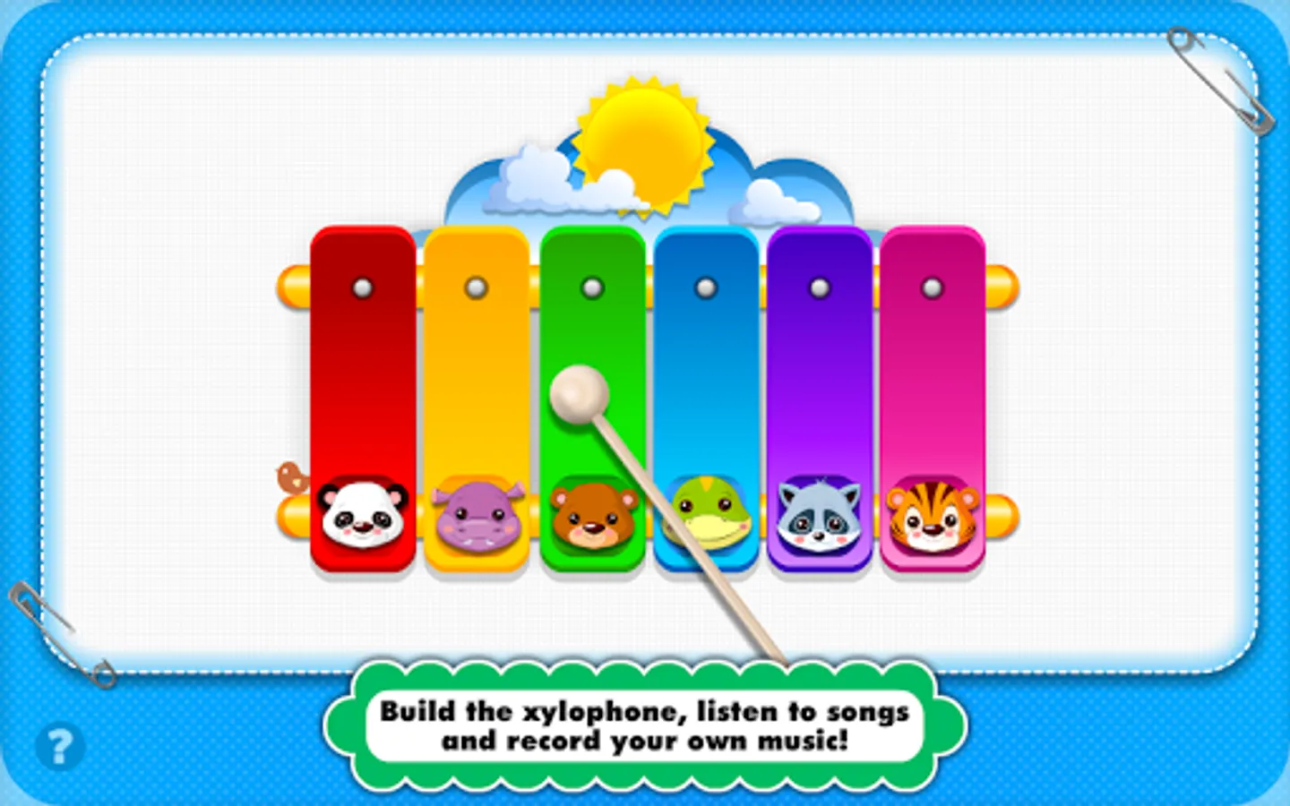 Complete a xylophone puzzle. Then play the xylophone, listen to a melody, or record your own music.