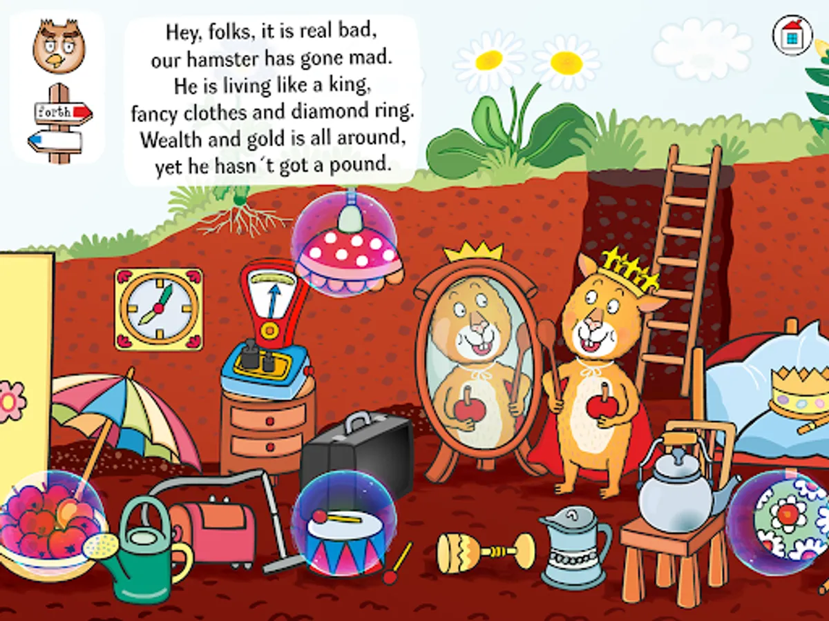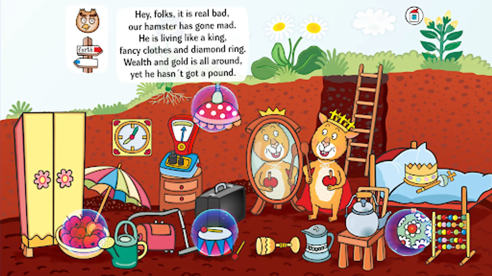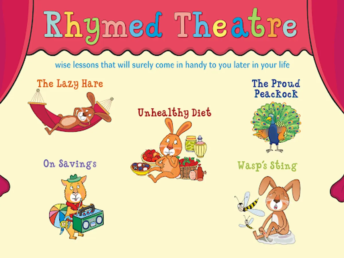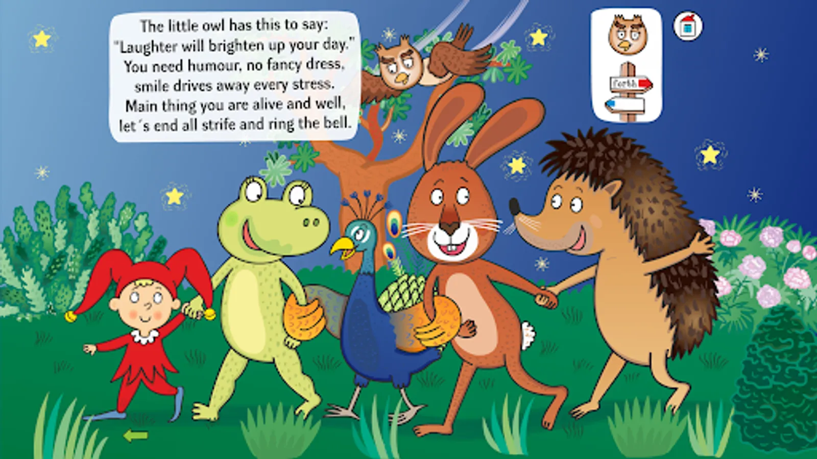 Called "Rhymed Theatre", this interactive book packed with animations offers children short rhymed fairy stories on animals with educational themes. For instance on unhealthy diet, on laziness or on overspending. The application is richly illustrated, with a small, loveable Punch keeping you company. It comes complete with an interactive objects and stage sets that gives the stories a new dimension. As a result, you can not only read with your children but also play with them.