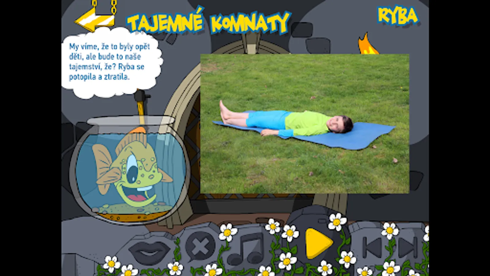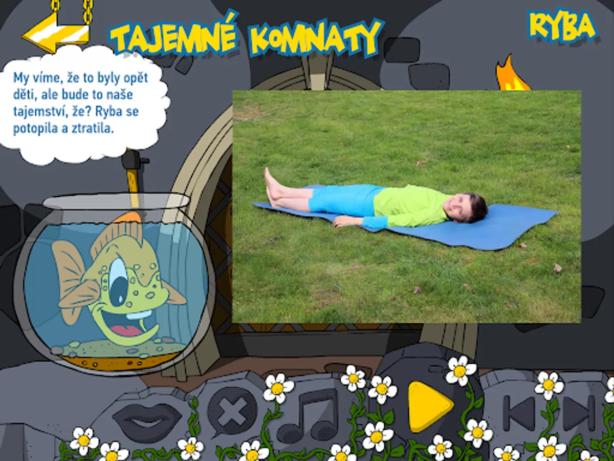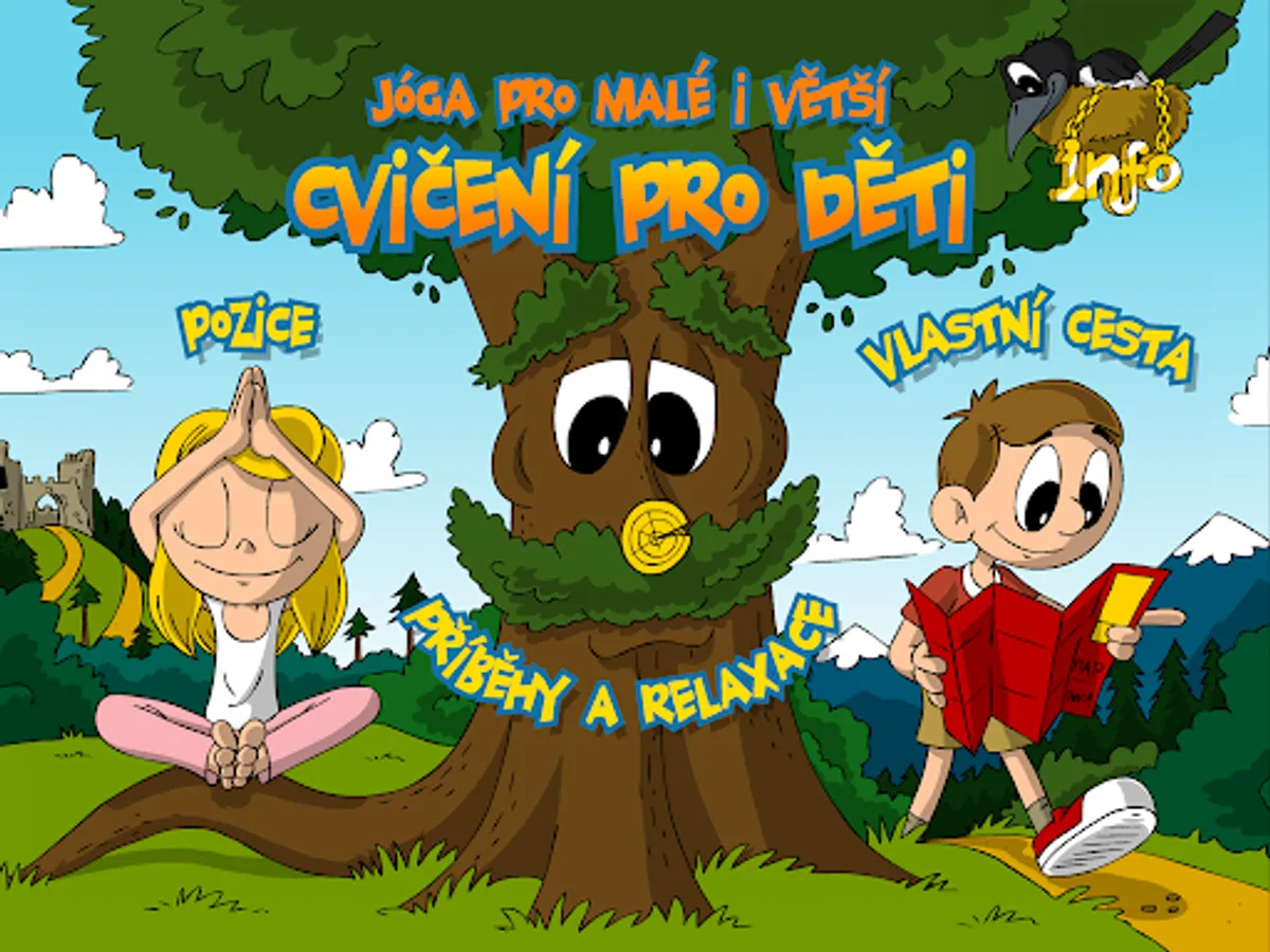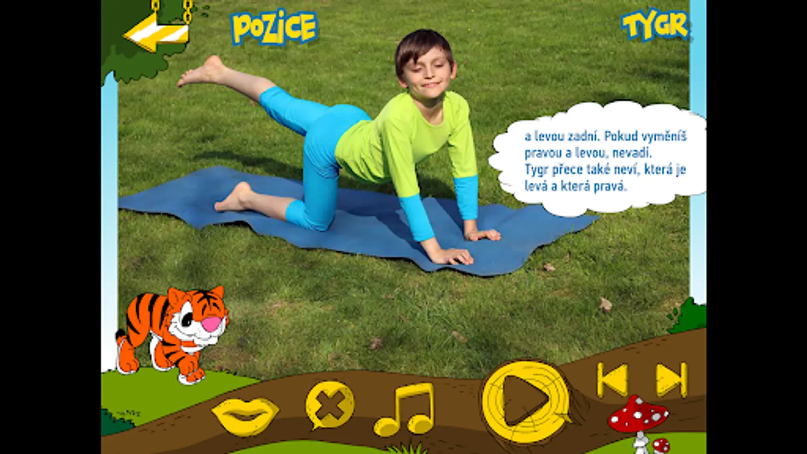 It contains 30 positions (eg: cat, dog, camel, frog, fish, warrior, greeting the Sun), which are based on yoga exercises adapted for smaller children. The individual phases and variations of the position are explained and illustrated in photos (rehearsed by children). Each position has its own little cheerful animation to entertain the children and a short poem narrated by the children.