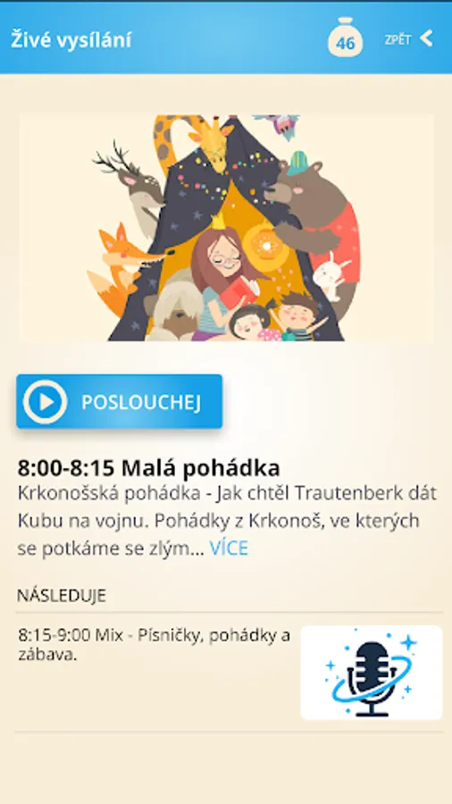 Download a playful app for your kids. They will earn points for listening to fairy tales, adventure stories, Radio Junior live streaming and other activities. These can be exchanged for super clothes for animated friend Ušoun Rušoun.