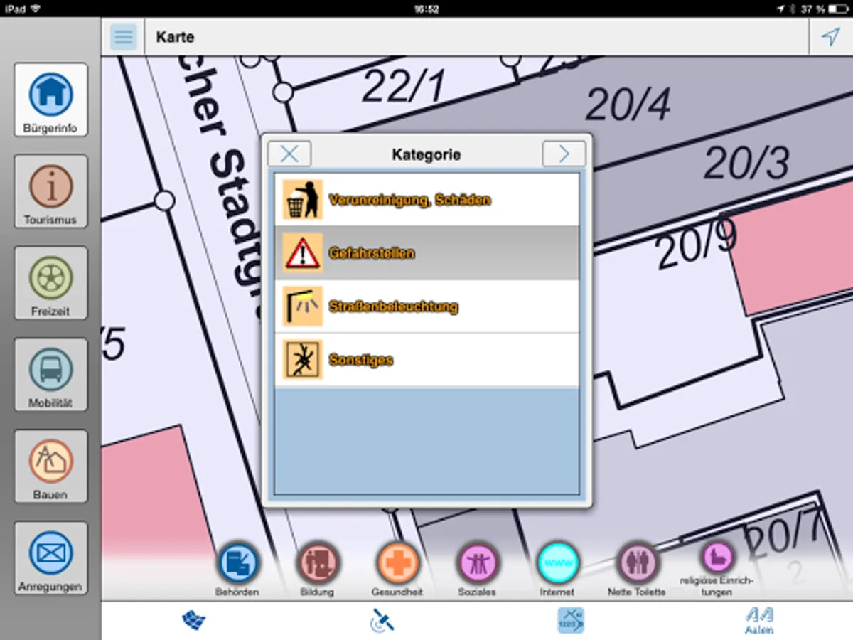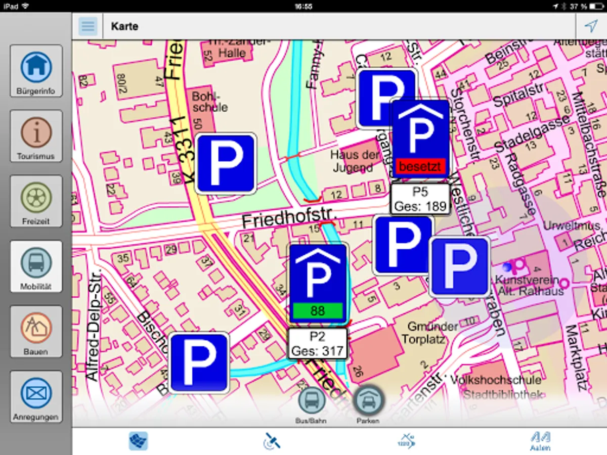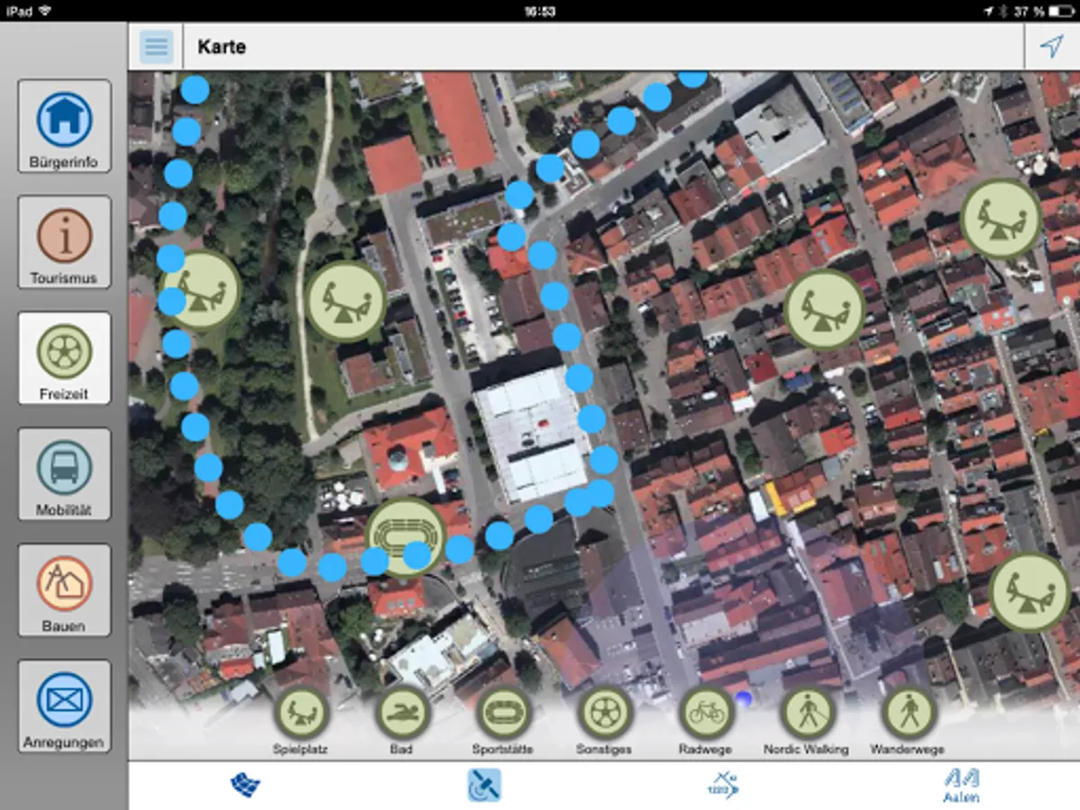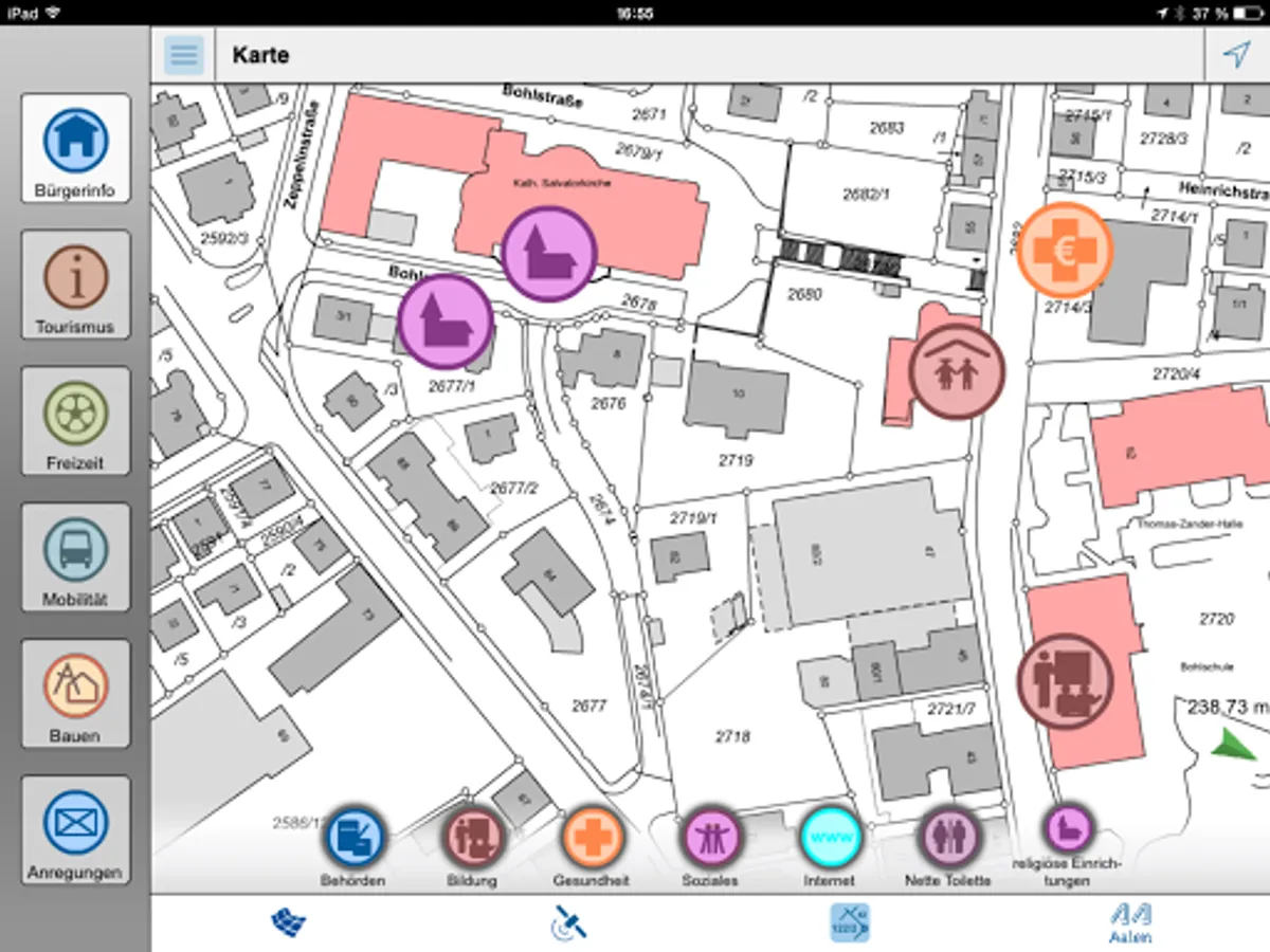 The Geo App of Aalen supplies for the entire metropolitan area the city map, aerial photos and