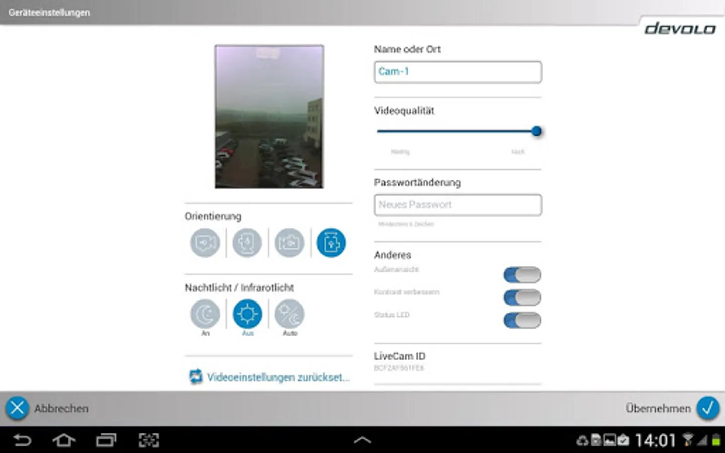 The dLAN® LiveCam gives you an eye on your home at all times. Ensuring the safety of your house, children or pets – you're always up to date, even when on holiday or at work. By calling up the dLAN® LiveCam app video in real time, you can see exactly what’s happening in front of the camera at all times. Together with a devolo ID you have all possibilities on your mobile device, at home or on www.mydevolo.com.
