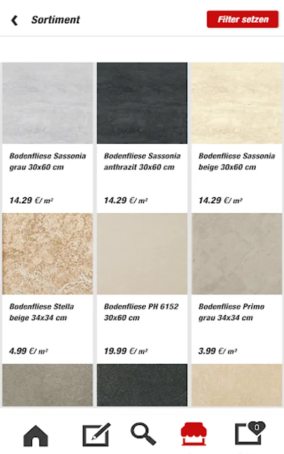 Search the entire tile and ceramic floor tile range from Toom Baumarkt. Our filter helps you to find the right tile or patio tile.
