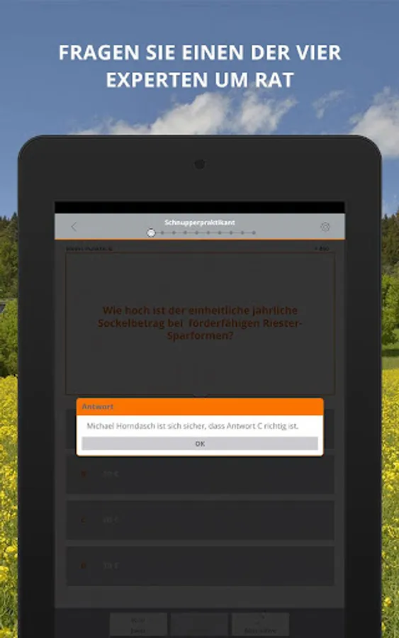 With each correctly answered question you can reach a new level. If you have answered 10 questions correctly, you are well on the way to the BBL professional.
