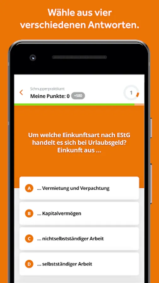 Each correctly answered question you reach a new level. If you have answered 10 questions correctly, you are well on the way to WiSo professional.