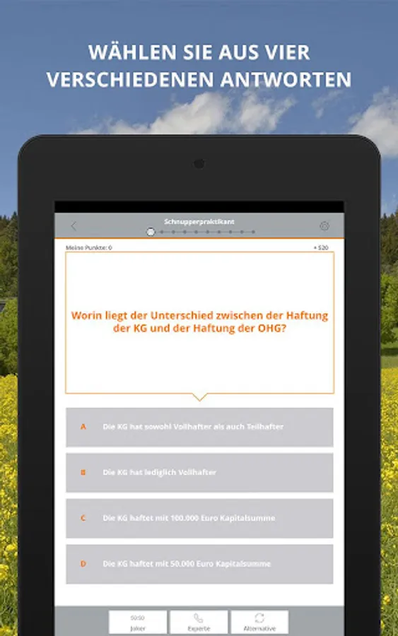 The ABG App "Who is WiSo professional?" Is an exciting quiz to check your knowledge in the field of economics and social studies for aspiring bankers.