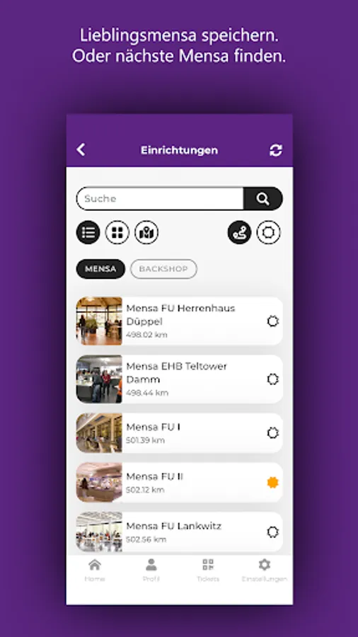 Use the location function to find the canteen near you, check the opening times and let yourself be navigated there.