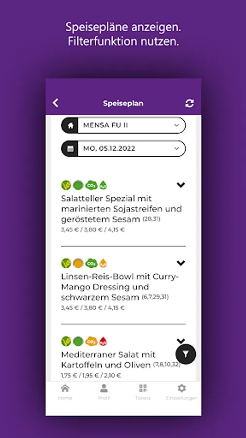 Load the menu of your favorite canteen onto your smartphone, filter according to your preferences and tastes and enjoy the mantra of our canteens: "We can do delicious!"